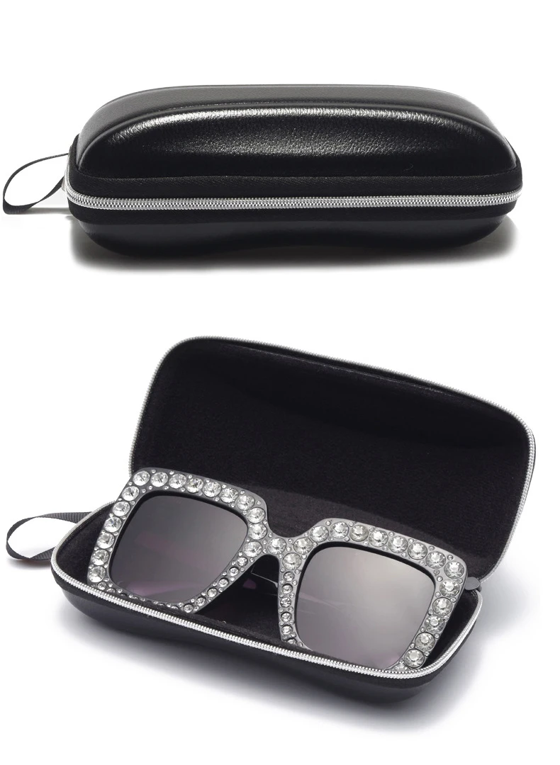 WHO CUTIE 2020 черный Чехол для очков из искусственной кожи для женщин и мужчин, солнцезащитные очки на молнии, наборы коробок, большой размер, индивидуальный логотип, оптовая продажа