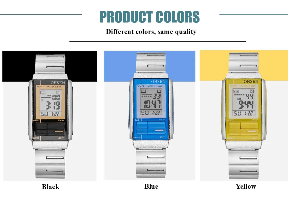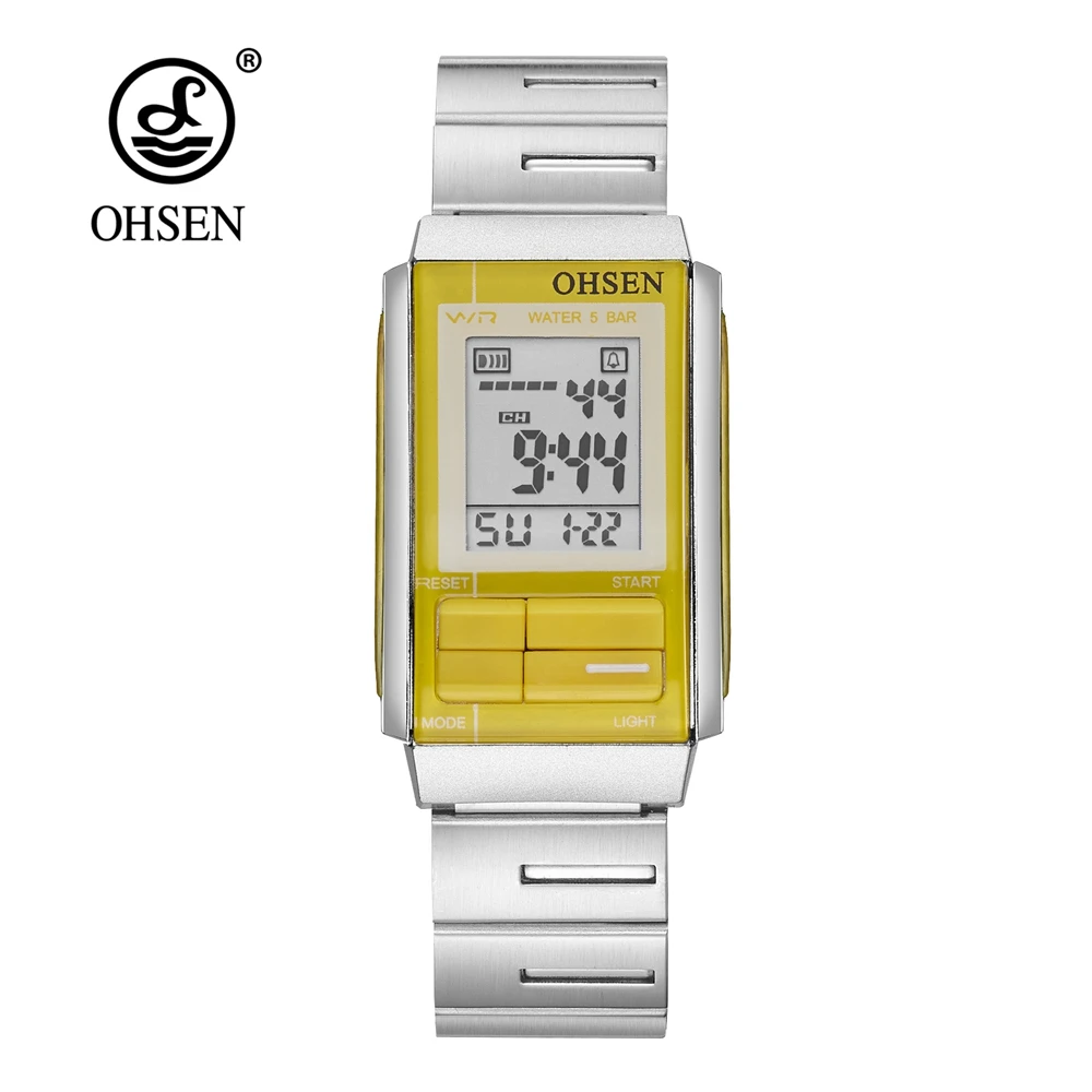 Часы-хронограф Женские цифровые, модные повседневные Элегантные водонепроницаемые с браслетом из нержавеющей стали, цвет желтыйчерный