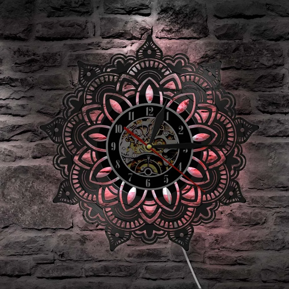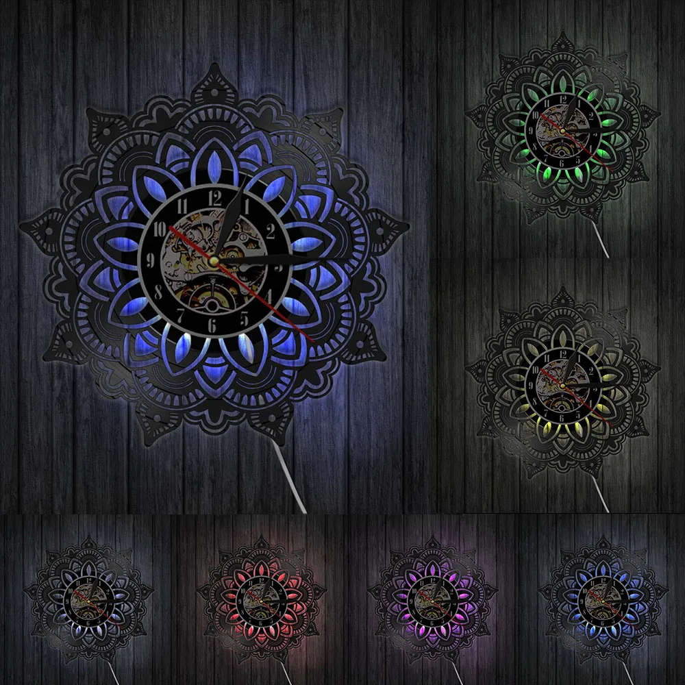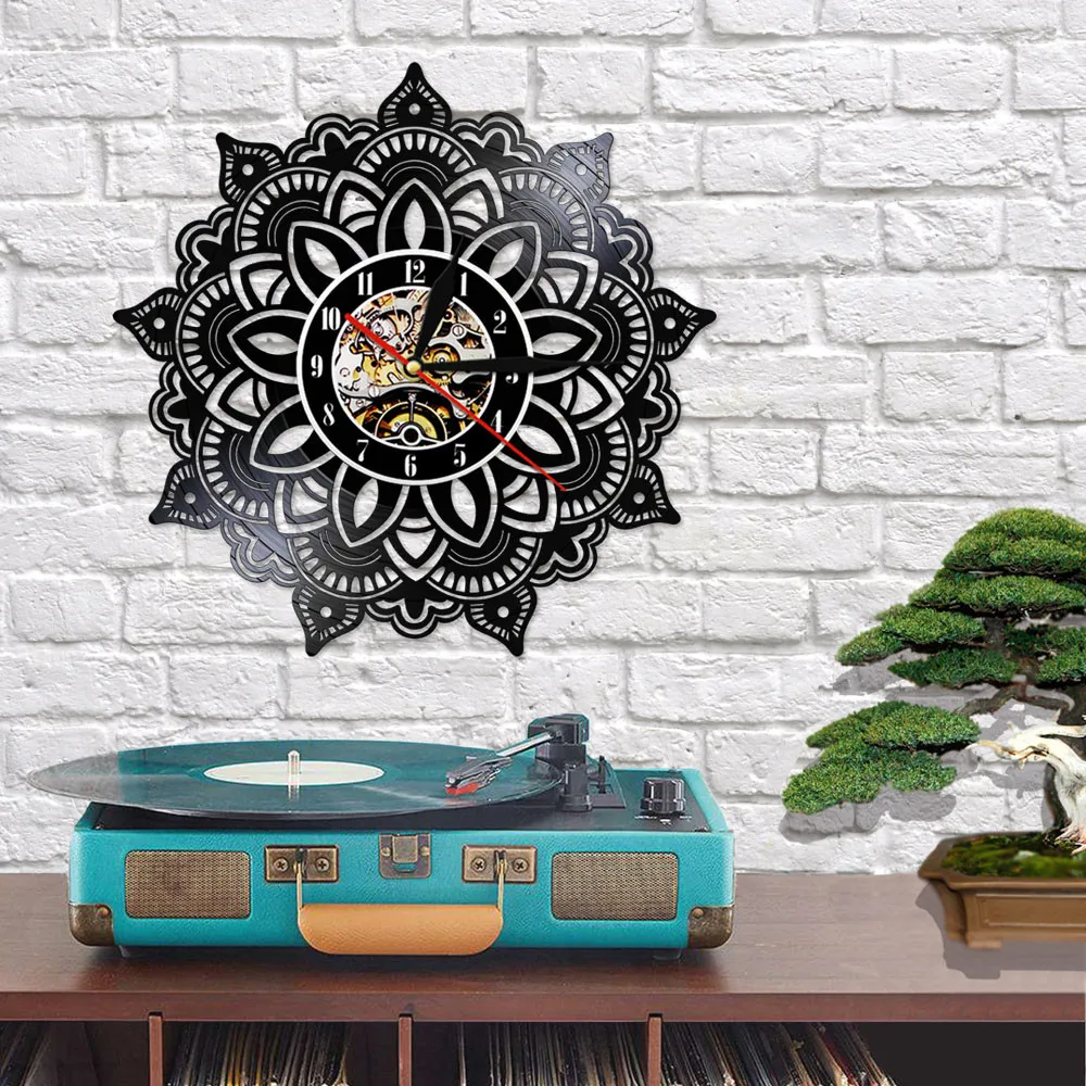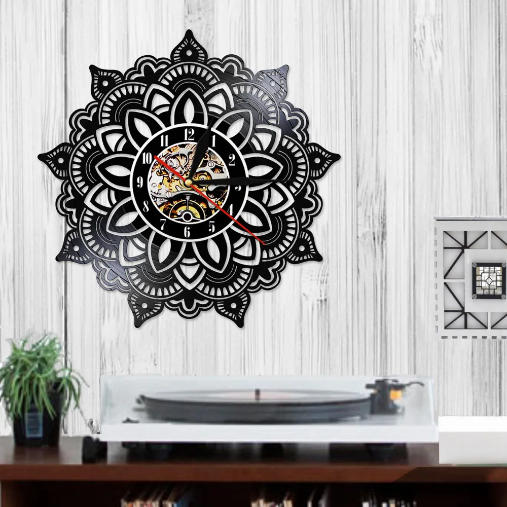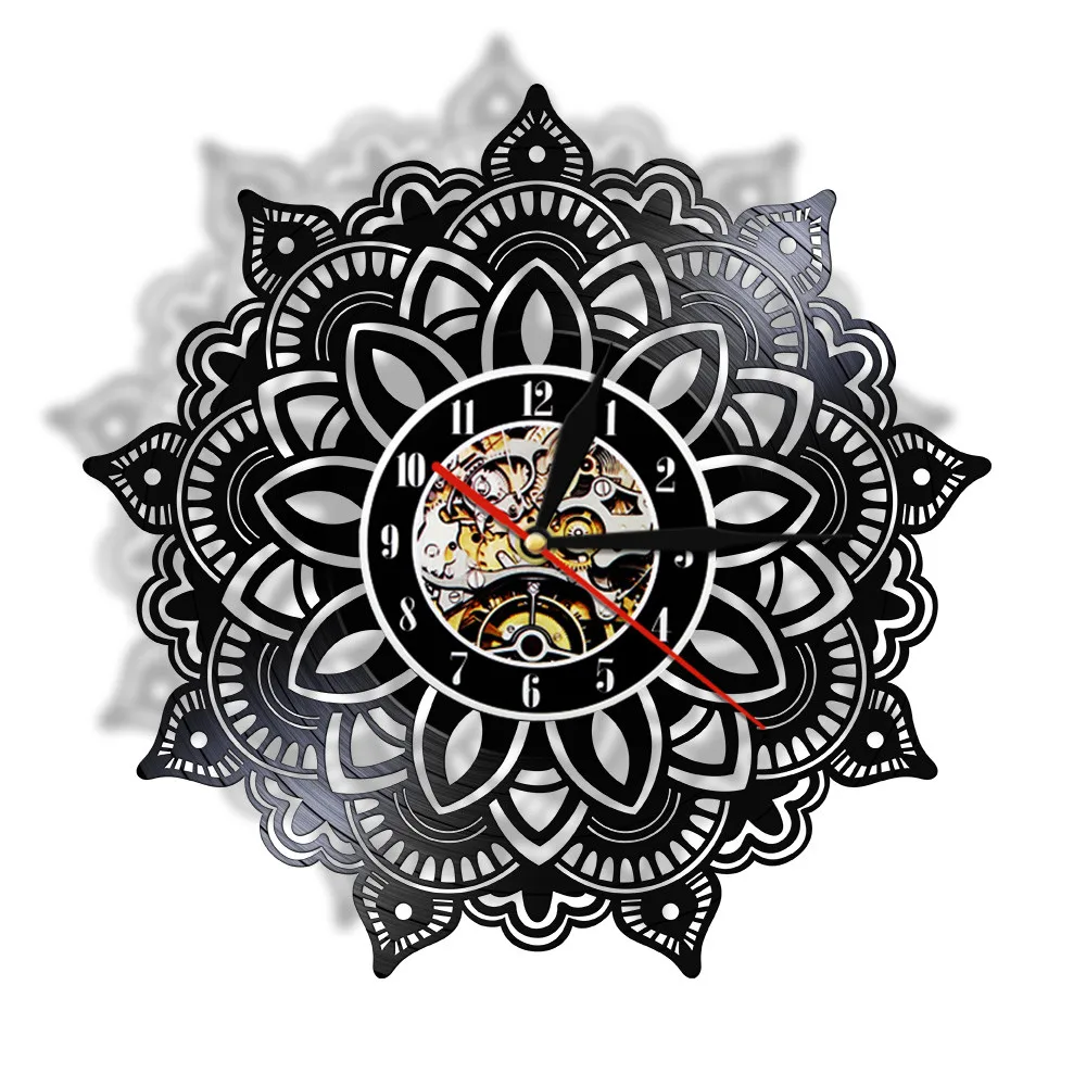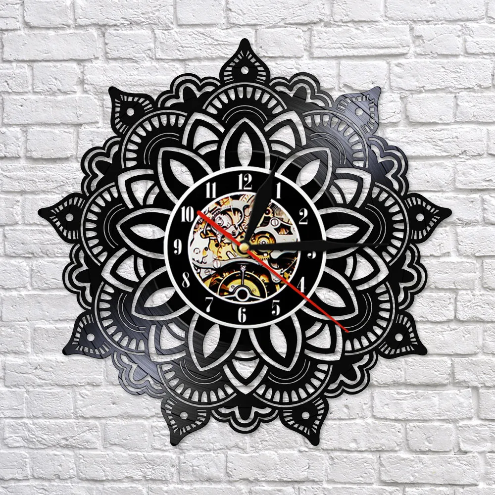 Индийская мандала цветок настенные часы семена Satori Йога музыкальный альбом CD диск Мандала Цветок Ручная работа ретро настенные часы Duvar Saati