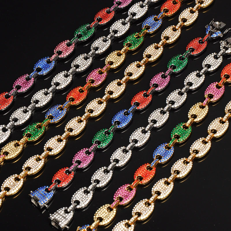 Цепочка для мужчин, в стиле хип-хоп, разные цвета, стразы из сплава