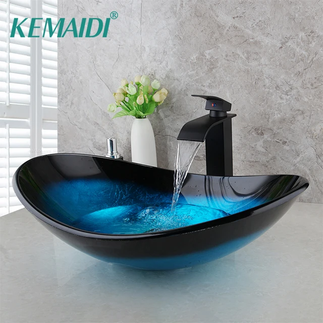 JIENI, синий, закаленное стекло, ручная роспись, водопад, носик, ра...