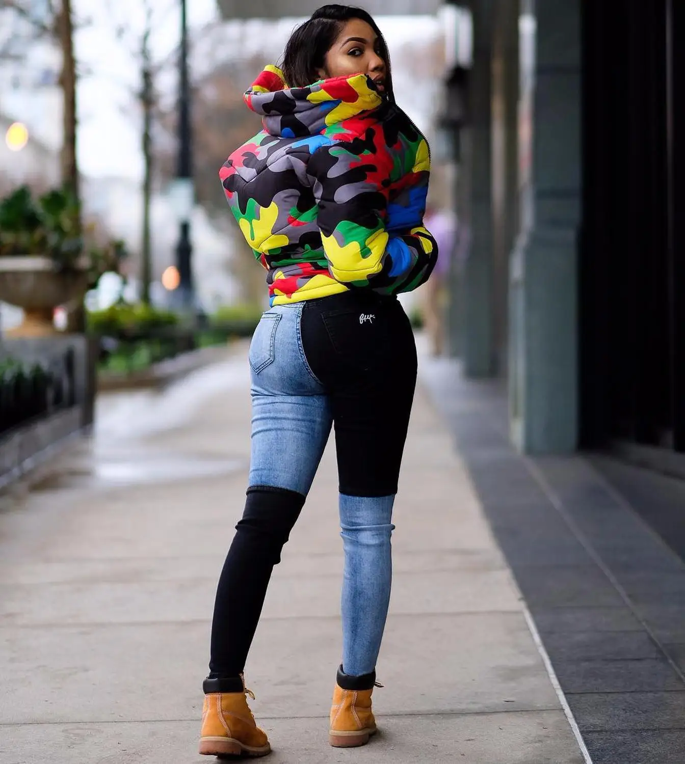 Цветная зимняя куртка с капюшоном, камуфляжная куртка, модное пальт...