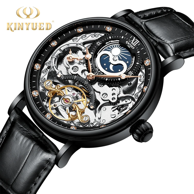 Мужские часы KINYUED с несколькими часовыми поясами, автоматические механические часы, мужские спортивные часы с турбийоном, деловые наручные часы, Relojes Hombre