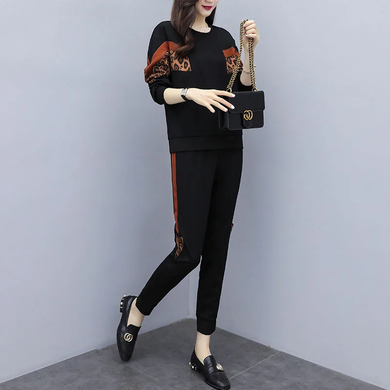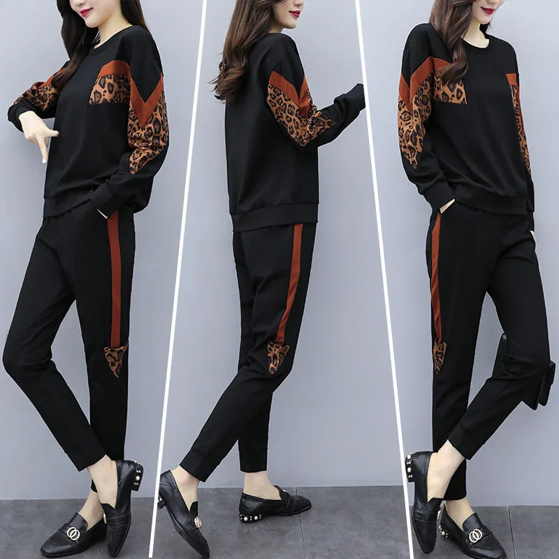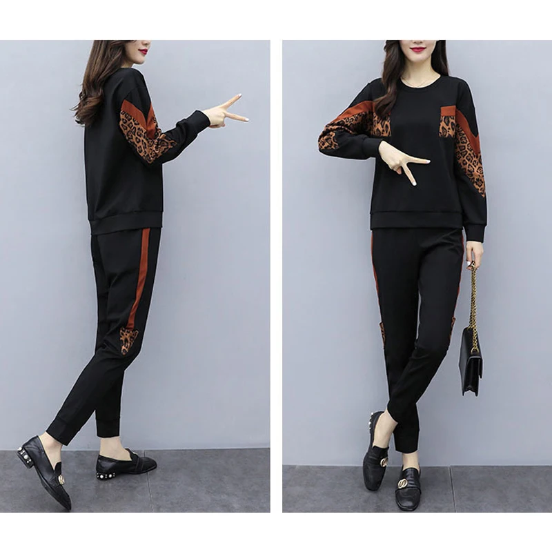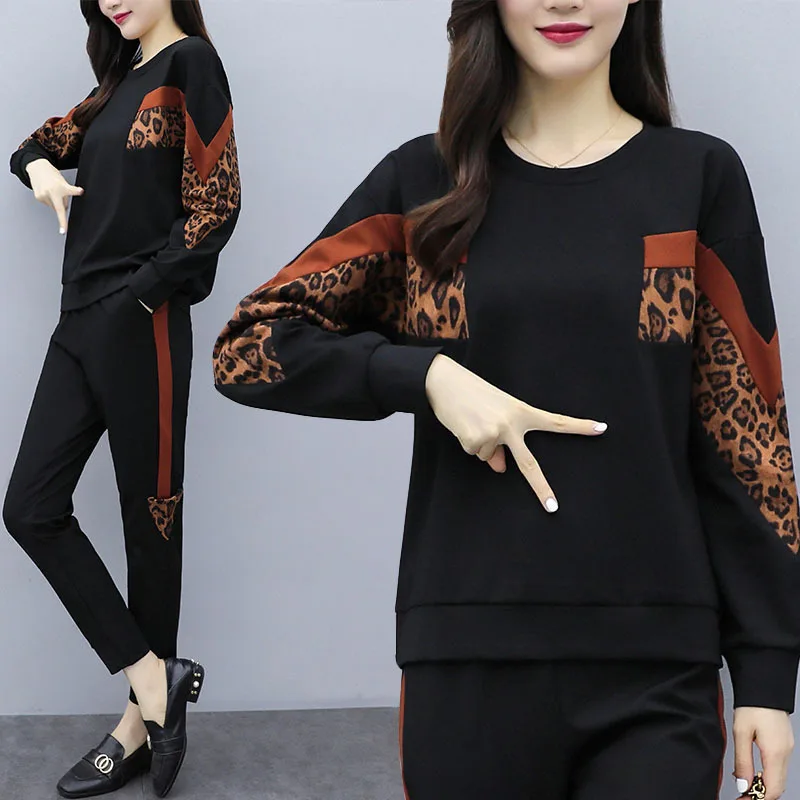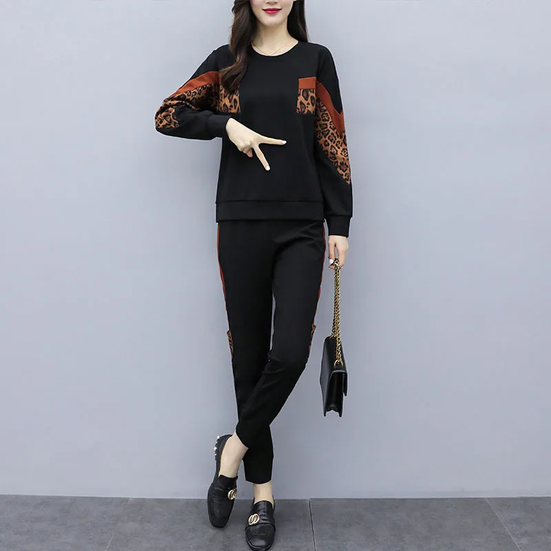 Женская одежда 2019 chandal mujer 2 piezas пуловер Топы и штаны леопардовое лоскутное платье Дамское размера плюс 4xl calcha moletom