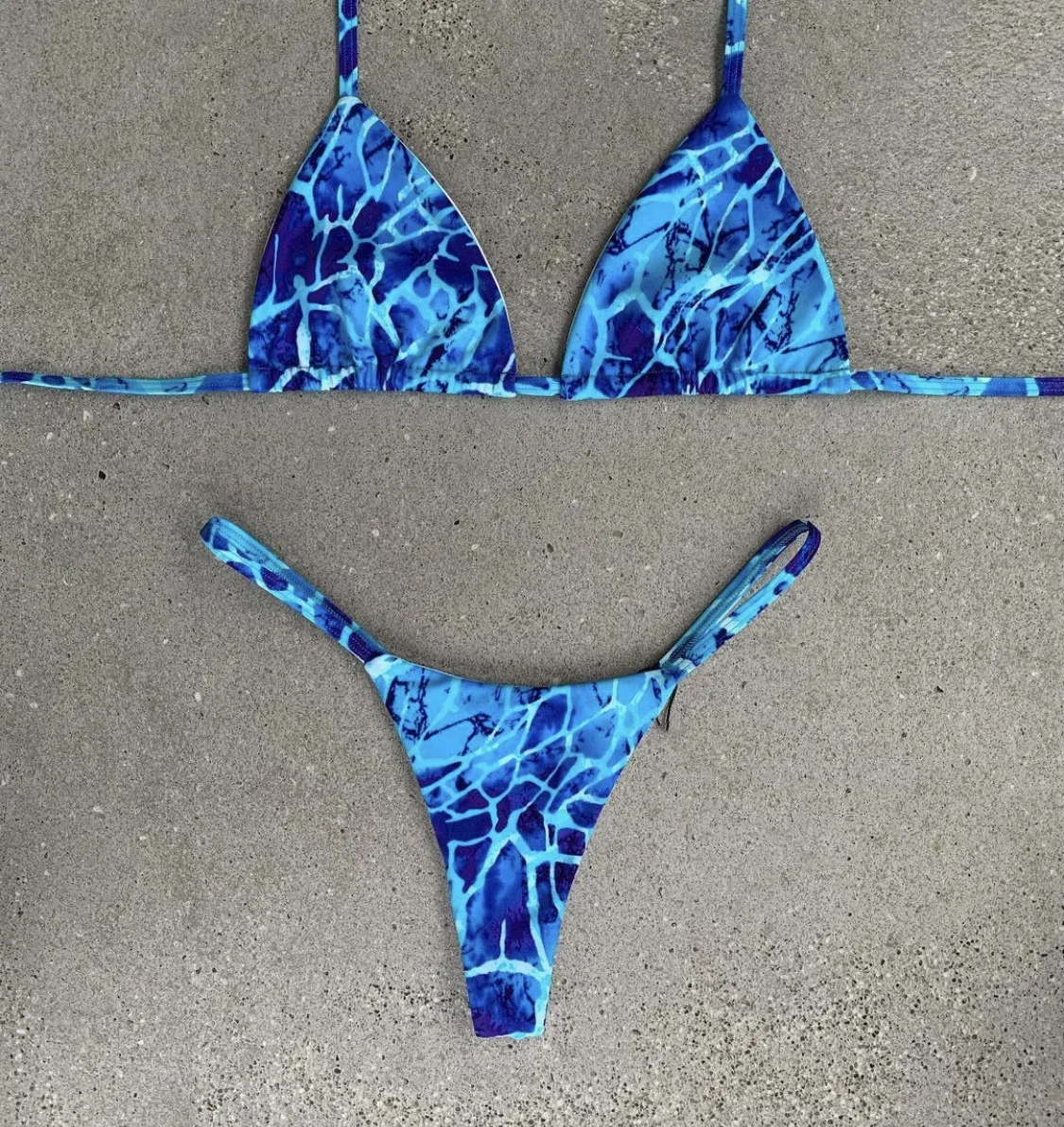 El azul es más celeste que en la foto. El bikini está bien, como cualquiera que te puedas comprar por ahí. No parece del Chino de abajo de tu casa. No transparenta, tiene forro. No huele. El sujetador puedes adaptarlo a tu pecho porque es de cortinilla y además puedes fruncir o estirar el triángulo para hacerlo más pequeño o más amplio. Lleva una almohadilla extraíble de relleno fino. Sin aro. Sienta bien, aunque no hace canalillo a no ser que lo tengas de serie. Yo mido1.56 y peso 51kg. De pecho una talla 80 española. Pediré más. Tardó poco en llegar a España (15 días aprox)
