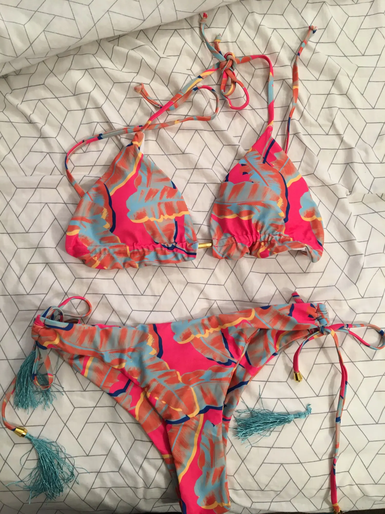 Это очень милое и красочное бикини, очень хороший материал, размер M мне подходит, я обычно S, но прочитаю руководство по размерам, которое я определил M, и оно было супер. Действительно, цвет не такой яркий, как на фотографии, он больше похож на темно-синий с красным, все еще очень милый и по цене, идеально! Он также пришел ко мне очень быстро. Большое вам спасибо