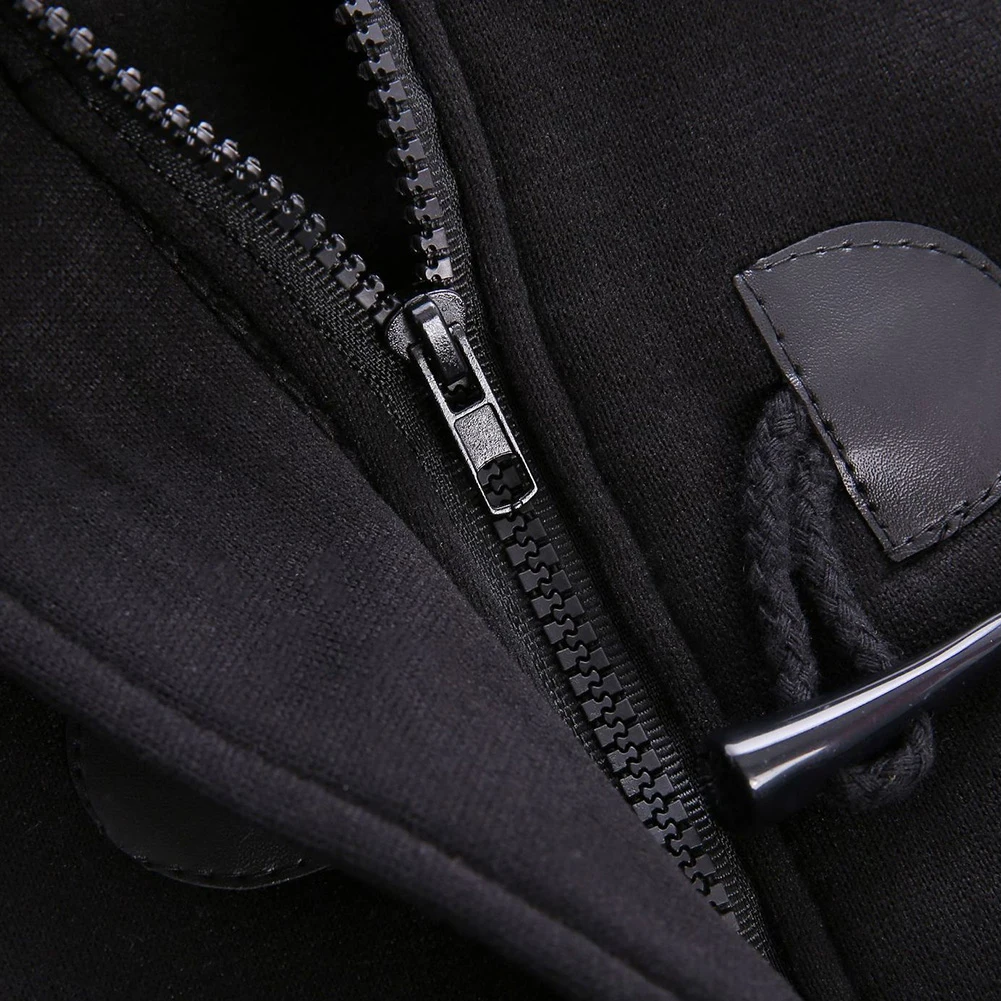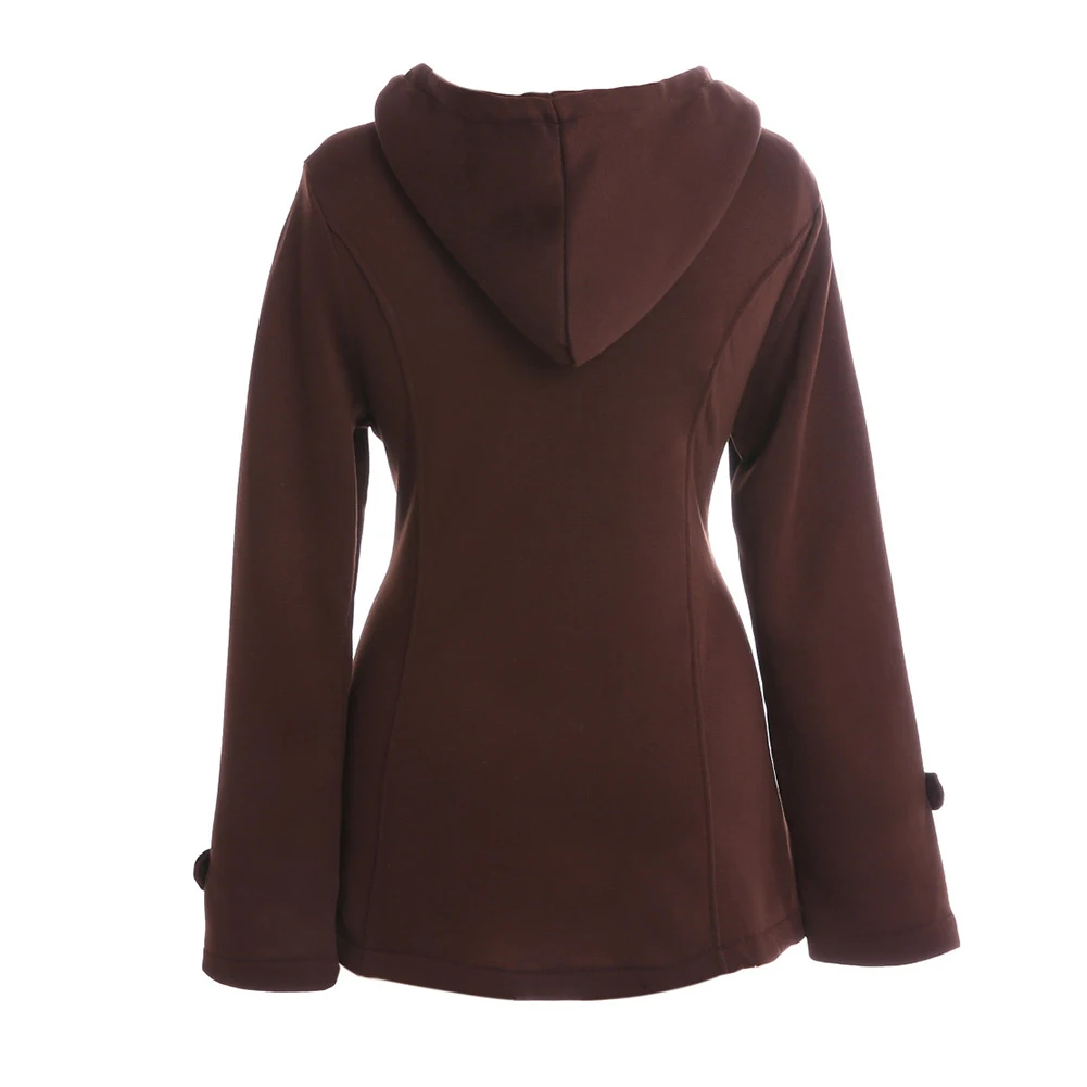 Зимняя мода размера плюс, женское однотонное пальто с длинным рукавом и капюшоном с роговыми пряжками