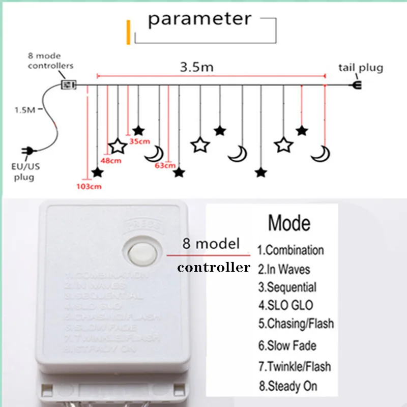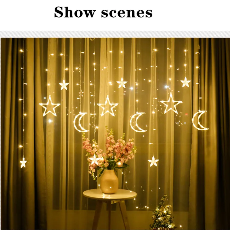 ИД Мубарак Луна, Звезды Рождественская гирлянда светодиодный занаве...