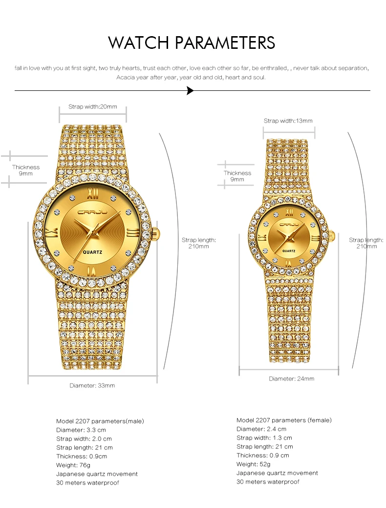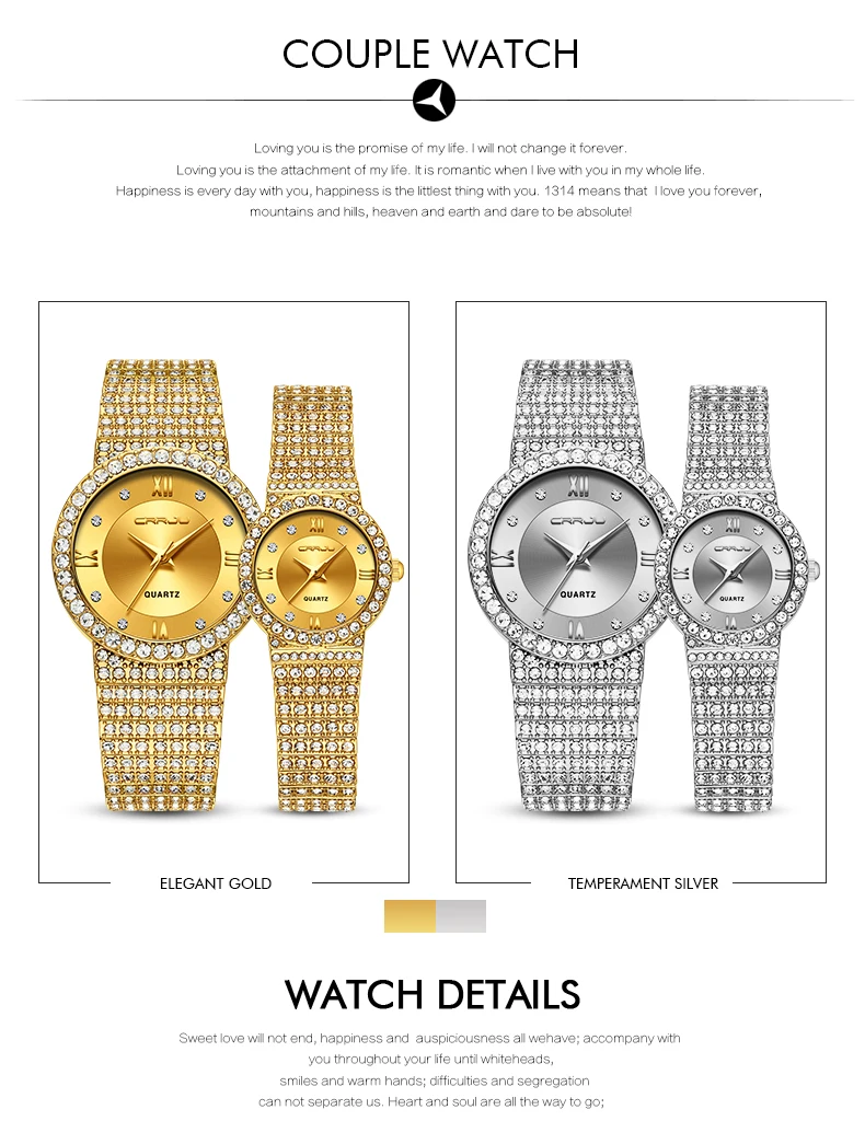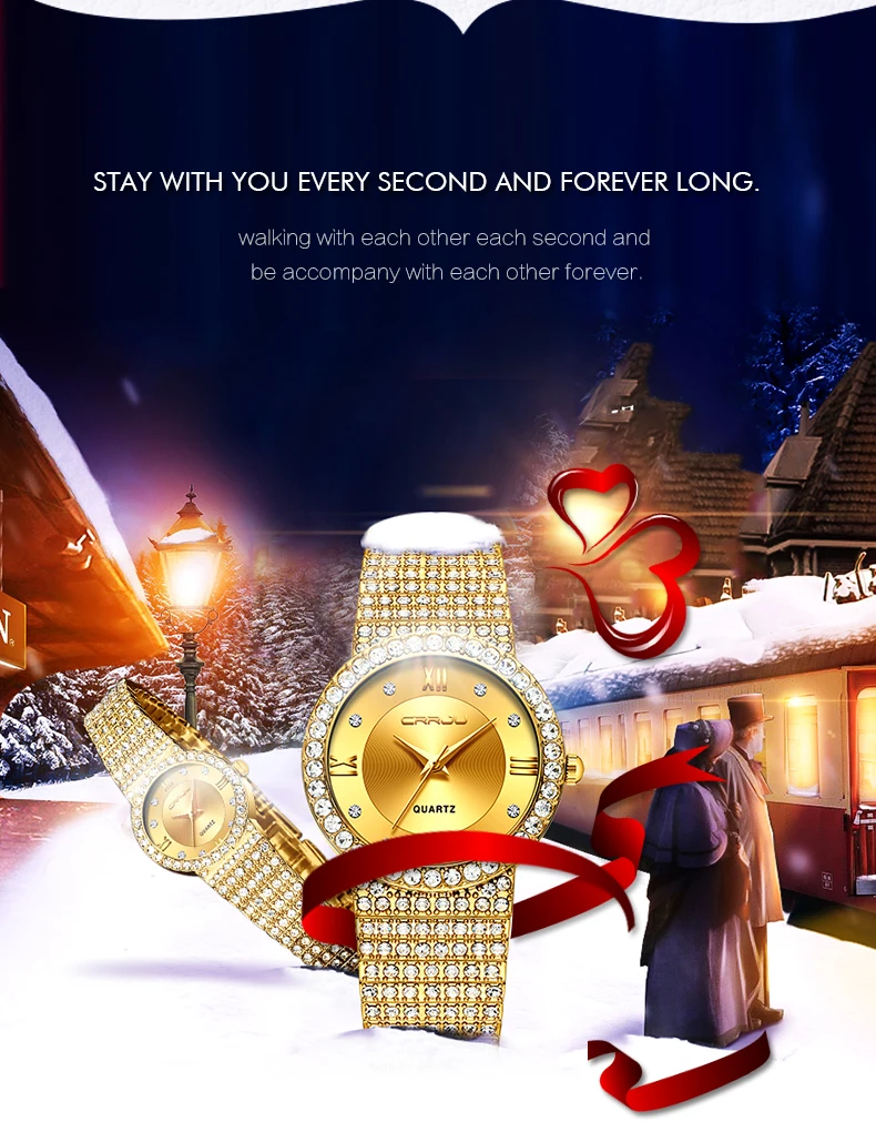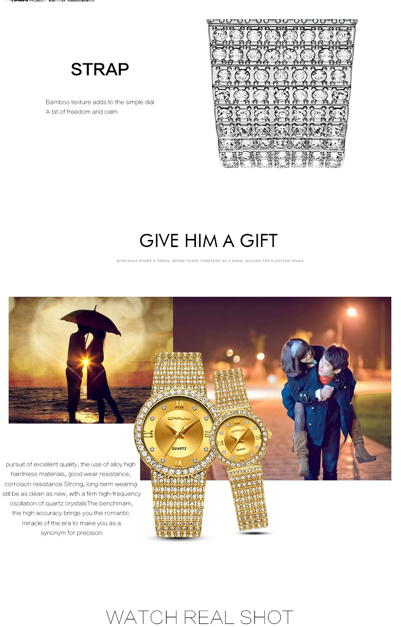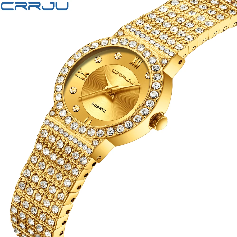 Часы Crrju для пар влюбленных, роскошные золотые наручные часы для мужчин и женщин, золотые наручные часы с бриллиантами, женские часы 2019