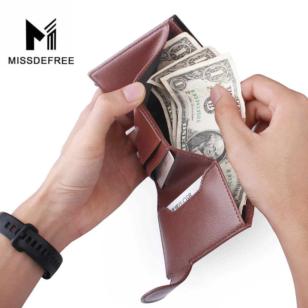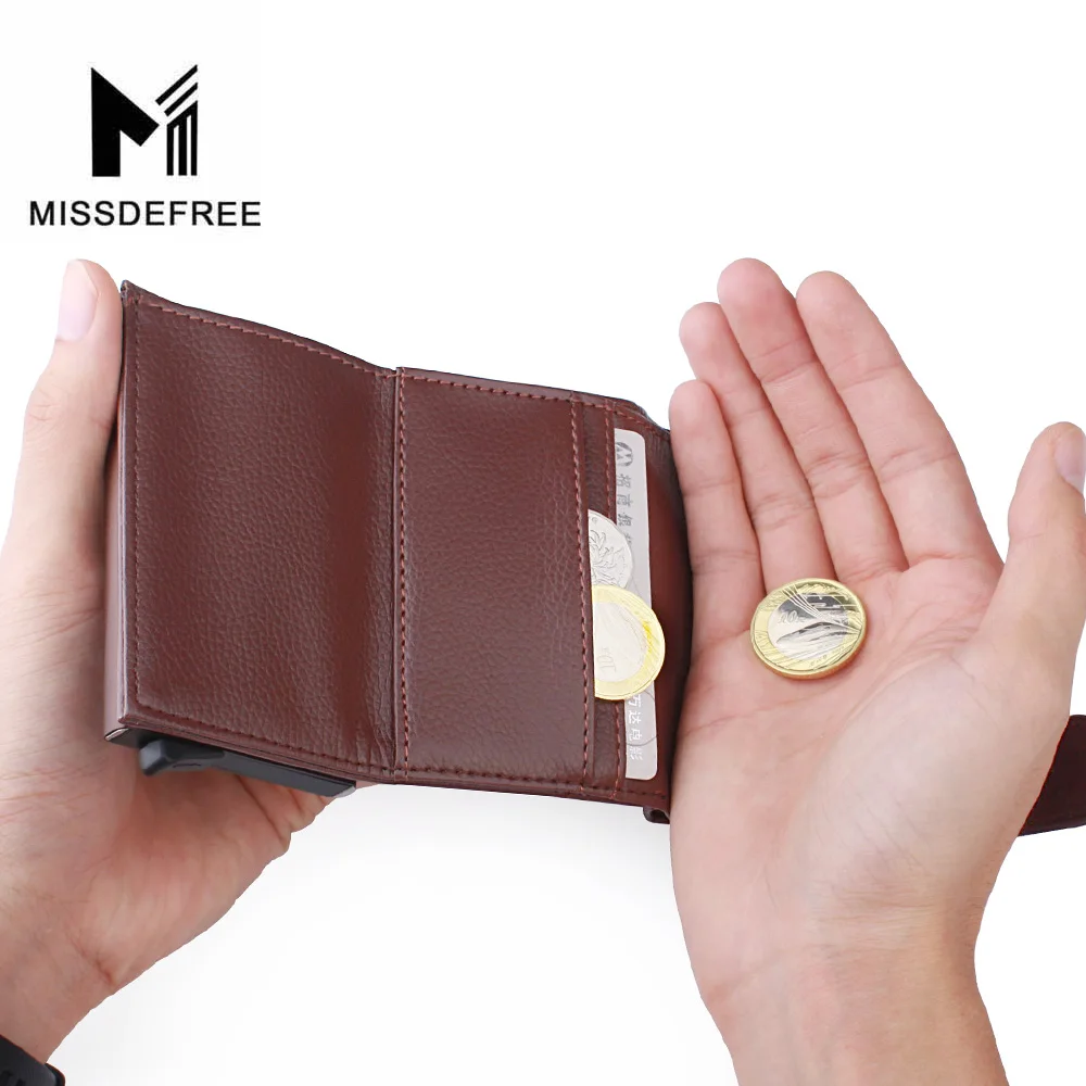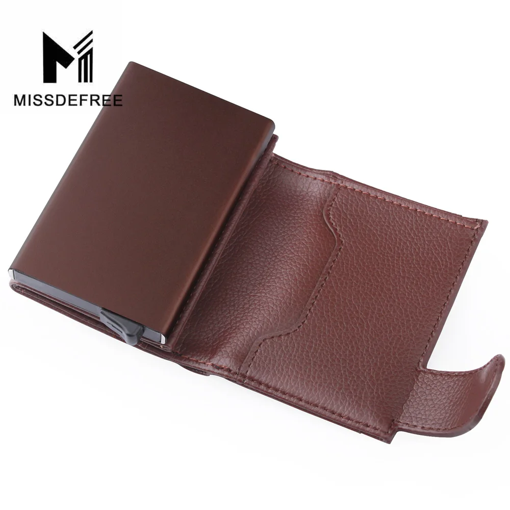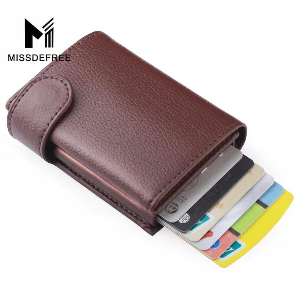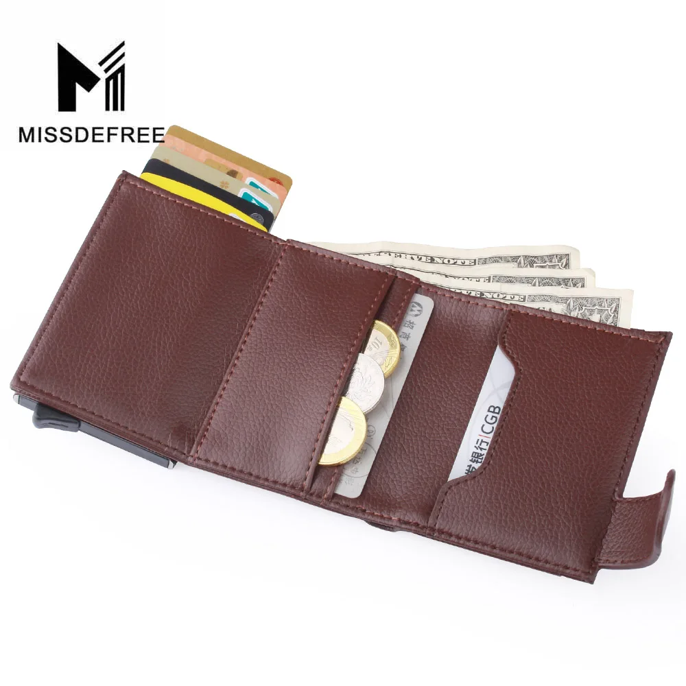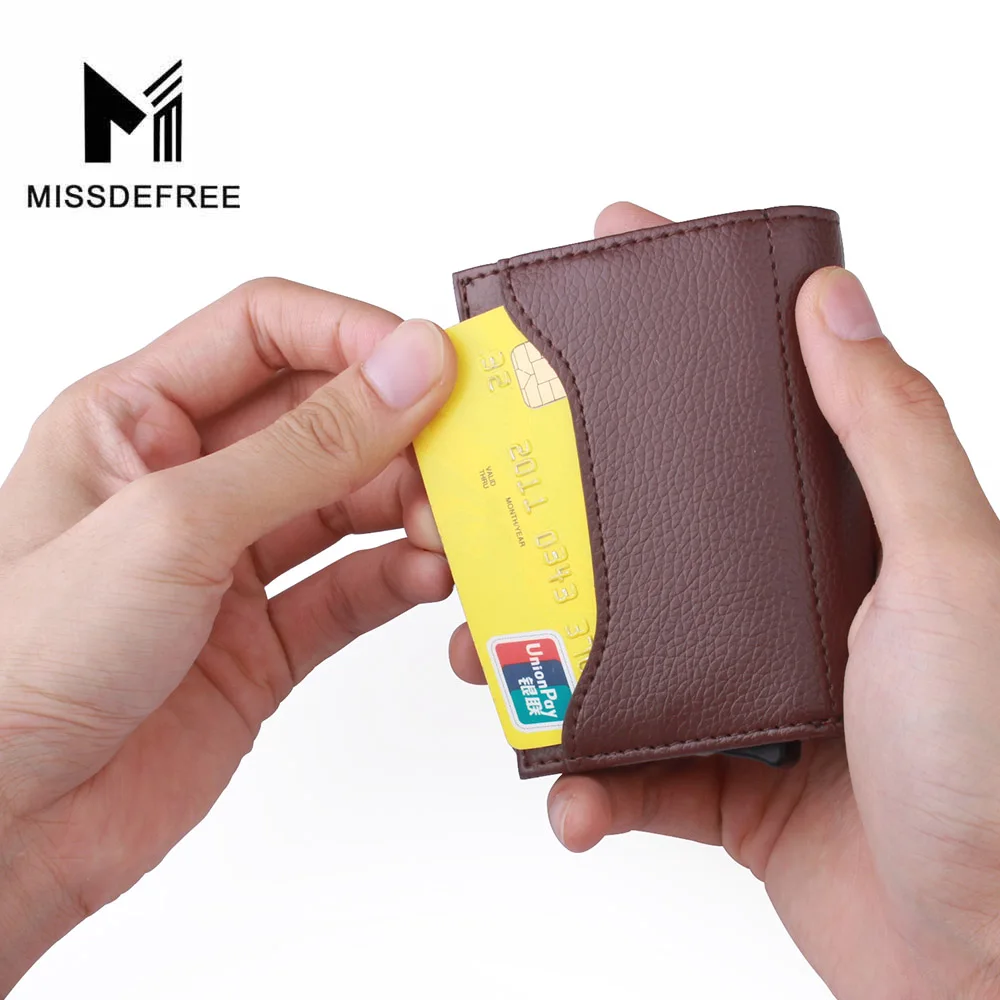 Деловой Тонкий кошелек из искусственной кожи, алюминиевый минималистичный держатель для карт, автоматический выдвижной кошелек для удостоверения личности, монет, ключей, RFID Блокировка