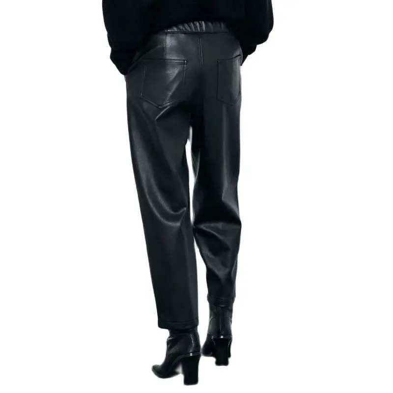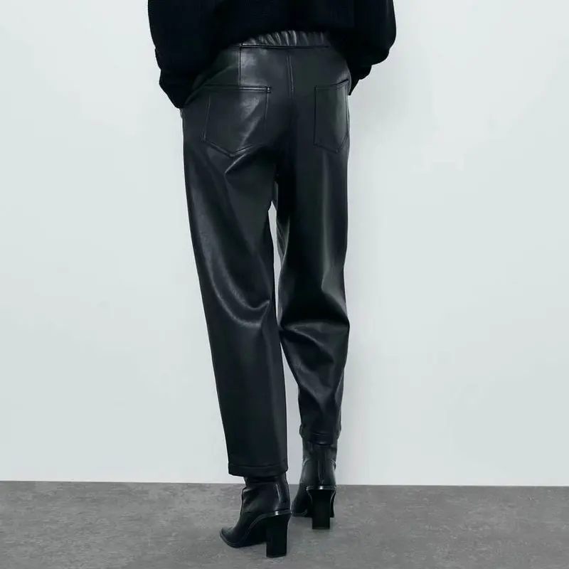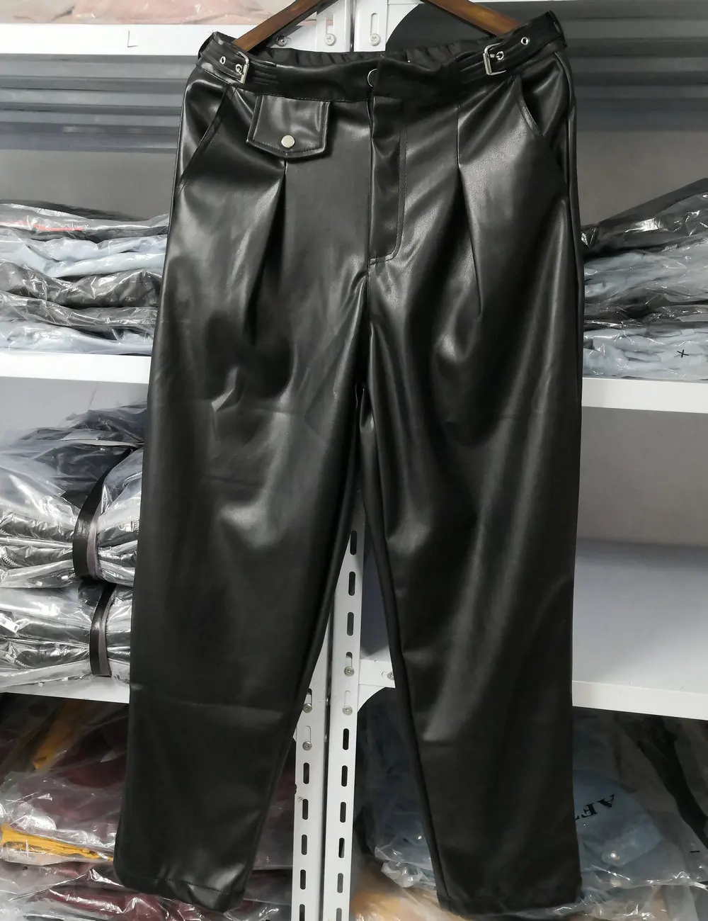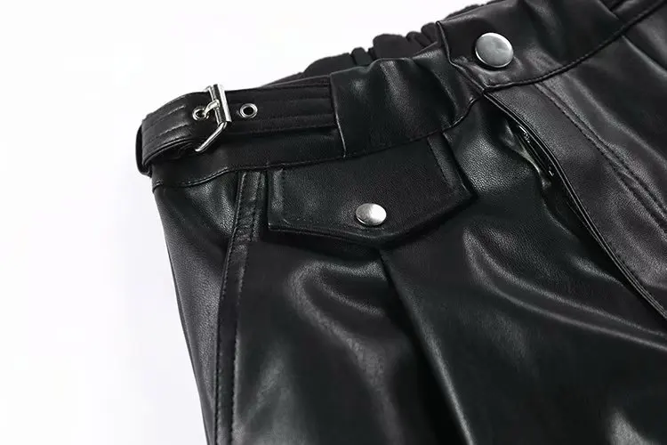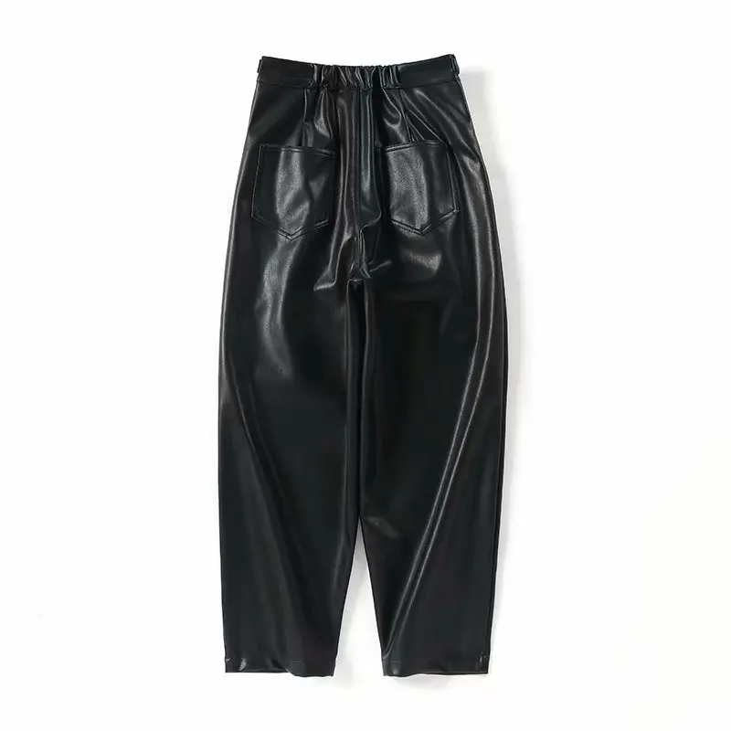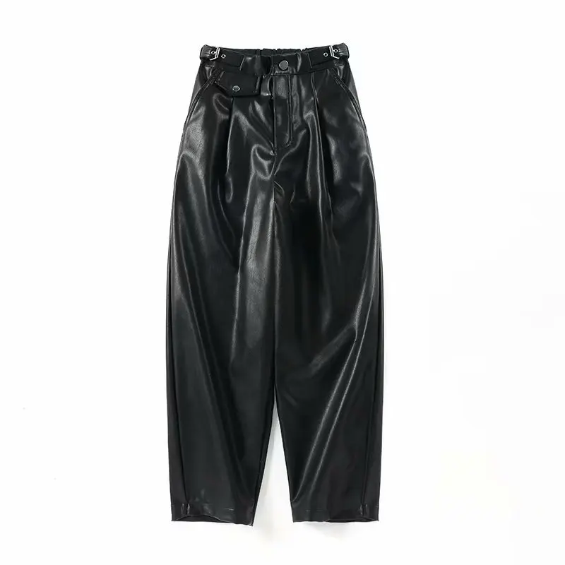 2021 новые модные женские элегантные брюки из искусственной кожи с высокой талией
