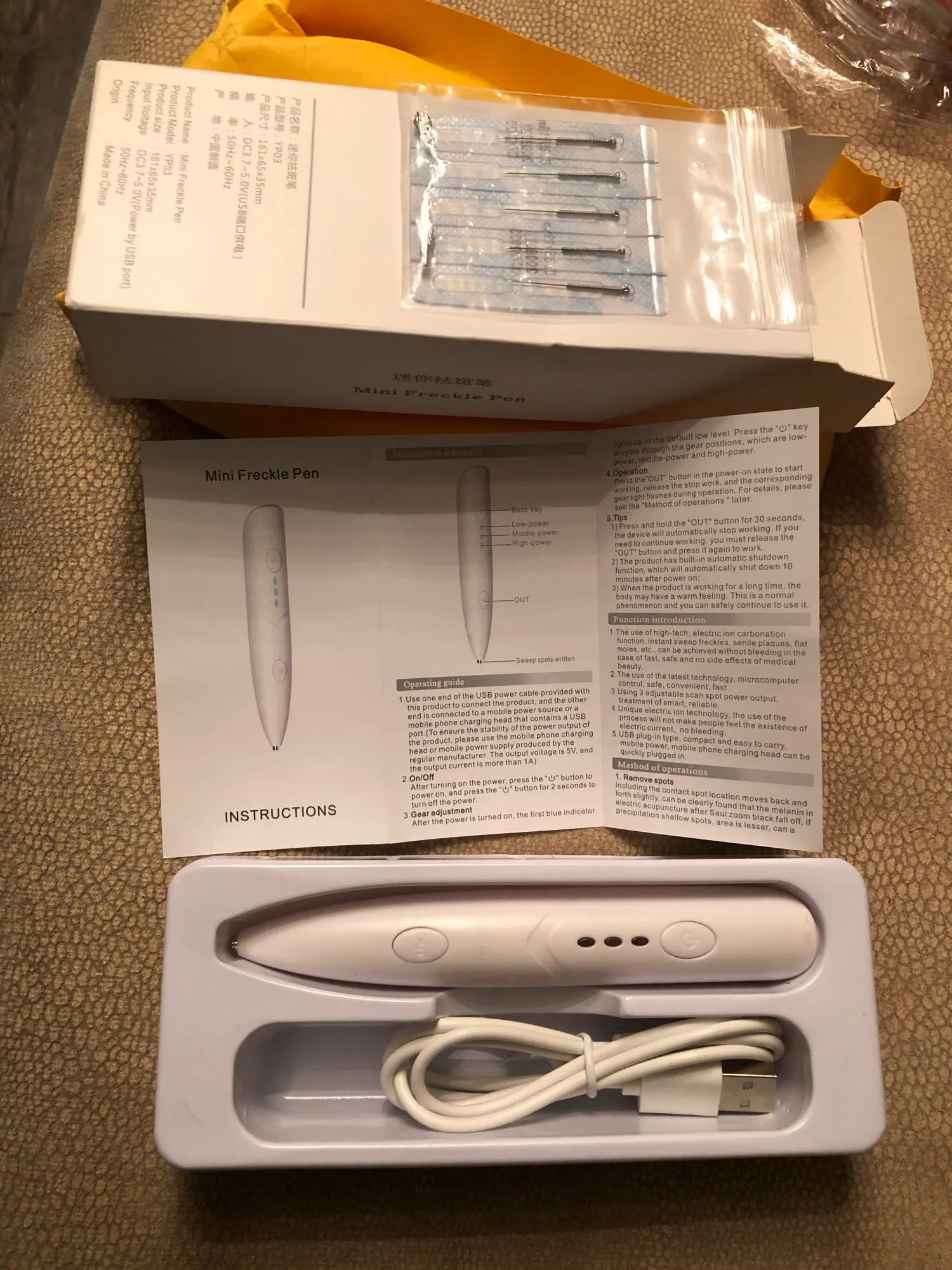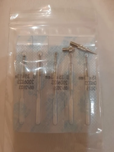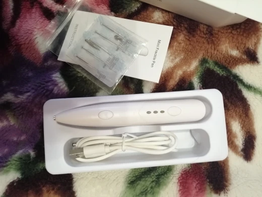 товар прибыл достаточно быстро, всего 14 дней до Оренбурга. все работает как в описании, в наборе одна толстая игла и пять тонких игл. на себе пока не пробовала, может потом дополню отзыв, моим подопытным кроликом стал лист герани с подоконника. при работе аппарат выжигает аккуратные ровные отверсия в листе и искрит. пробовала разные мощности особо не заметила разницы. в целом неплохо, можно заказывать. p.s.: и кстати это не лазер а аппарат электрокоагуляции, он вырабатывает высокочастотный электрический ток,