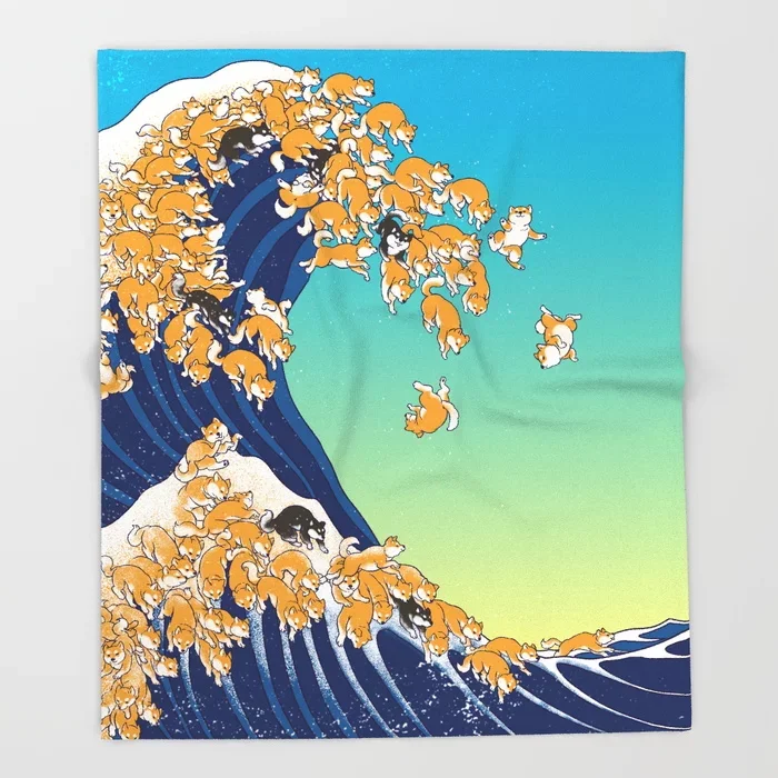 Мультяшное одеяло с собакой Шиба-ину, милый детский дизайн, одеяло с большой волной для кровати, рождественские украшения для дома
