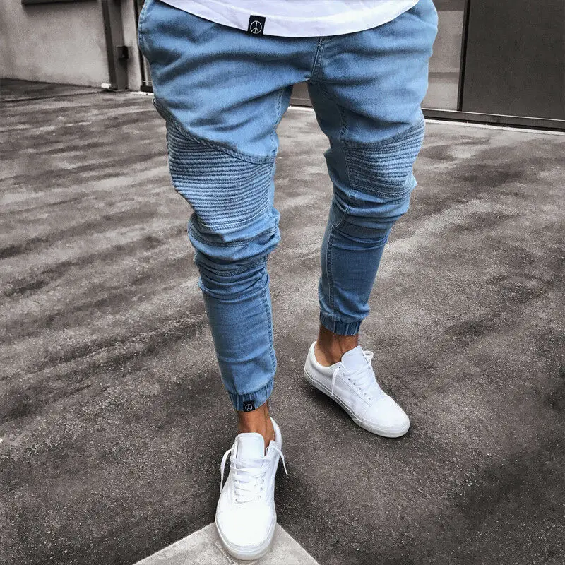 Модные мужские рваные обтягивающие джинсы, потертые зауженные Стрейчевые джинсовые брюки на молнии, потертые строчки