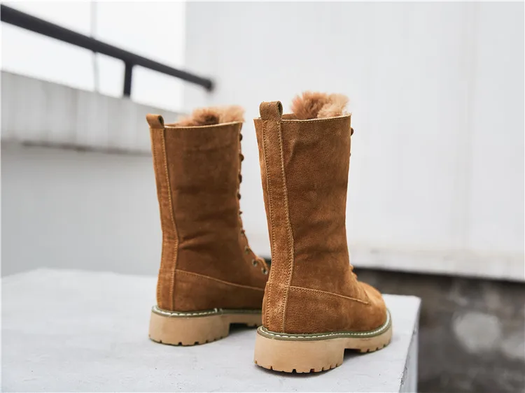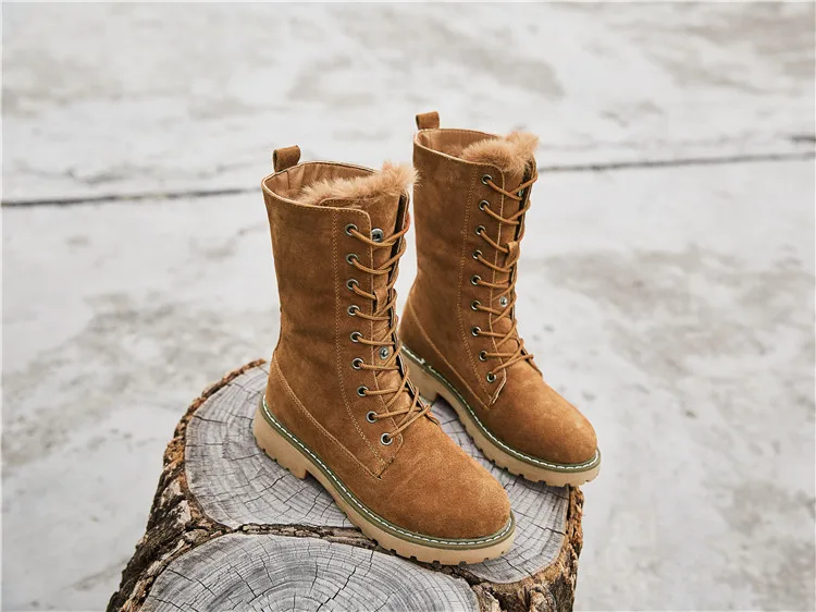 Женские теплые ботинки Koovan, зимние ботинки из натуральной кожи с мехом, женские ботинки средней длины, водонепроницаемые ботинки с плюшевой подкладкой на плоской подошве, 41 размер, 2022