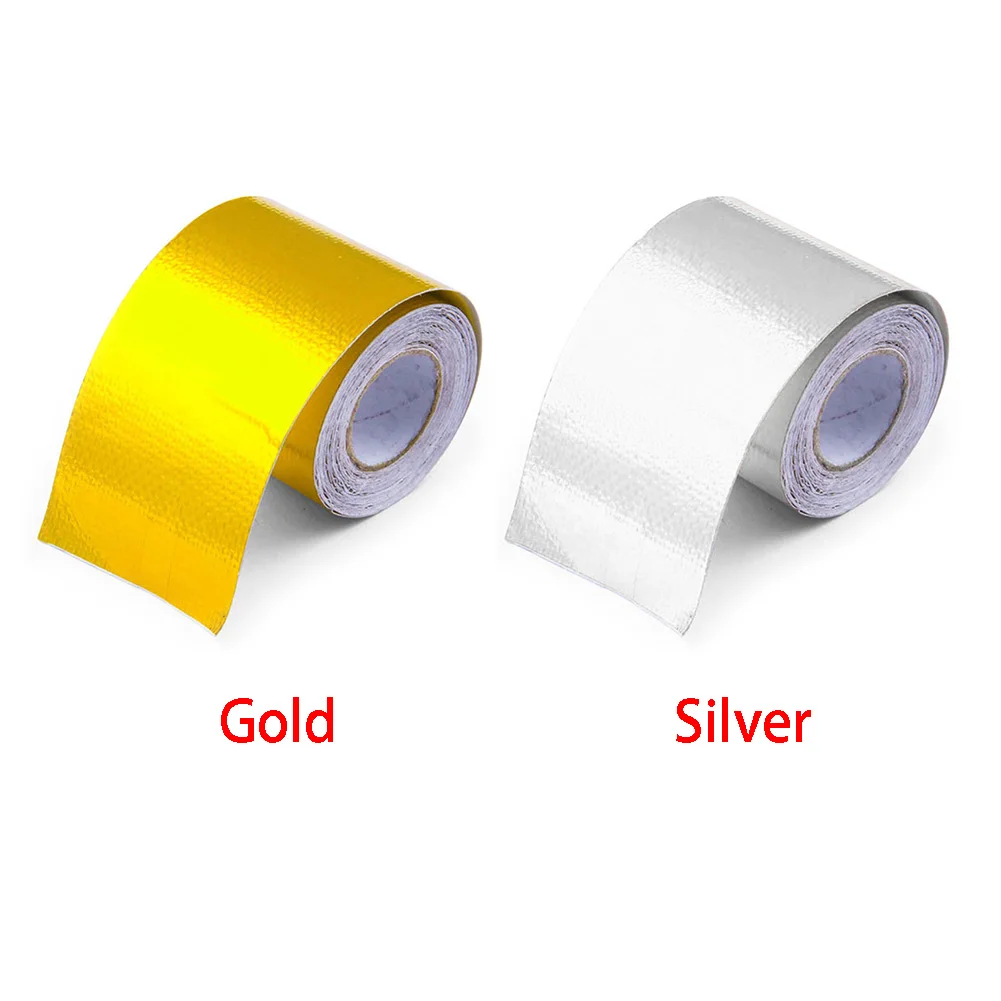 Светоотражающая самоклеящаяся Золотая выхлопная труба 5 м, высокотемпературный рулон, серебристая алюминиевая фольга, оберточная лента, тепловой экран