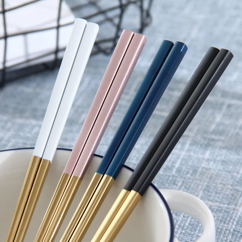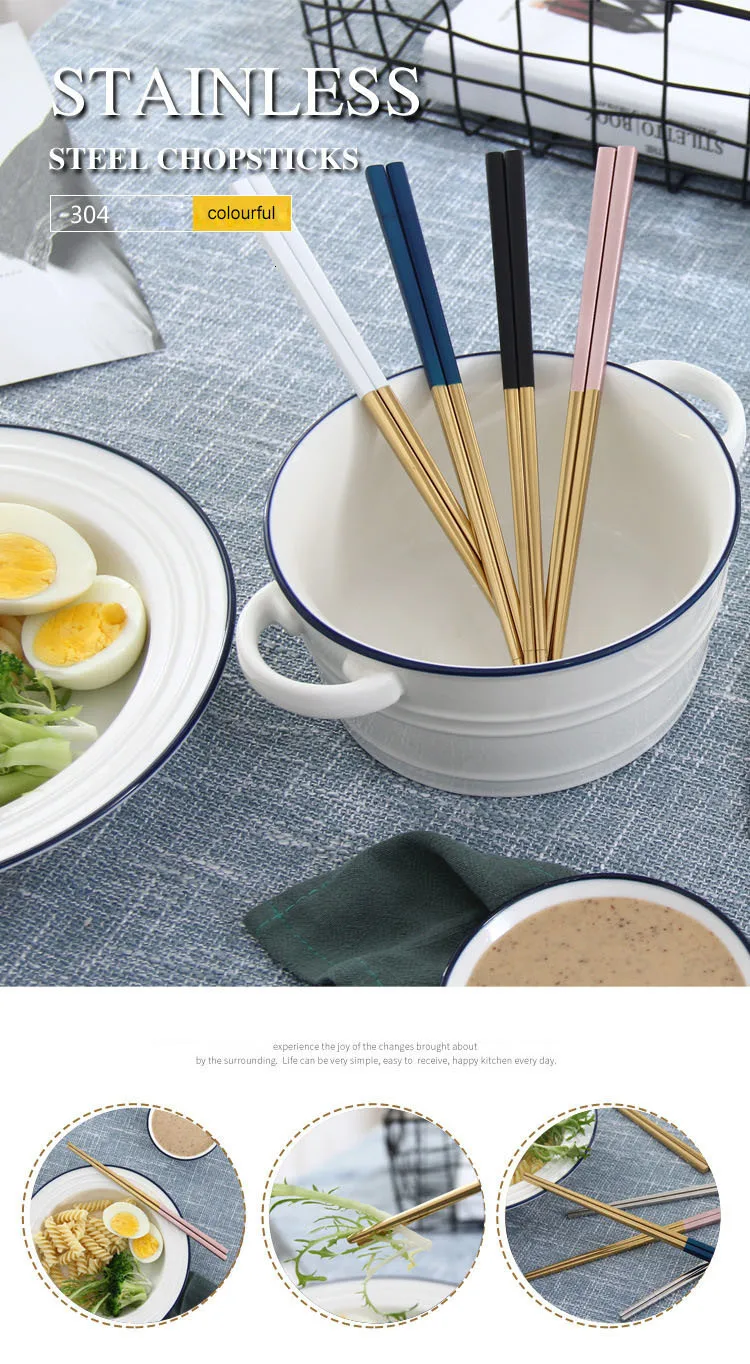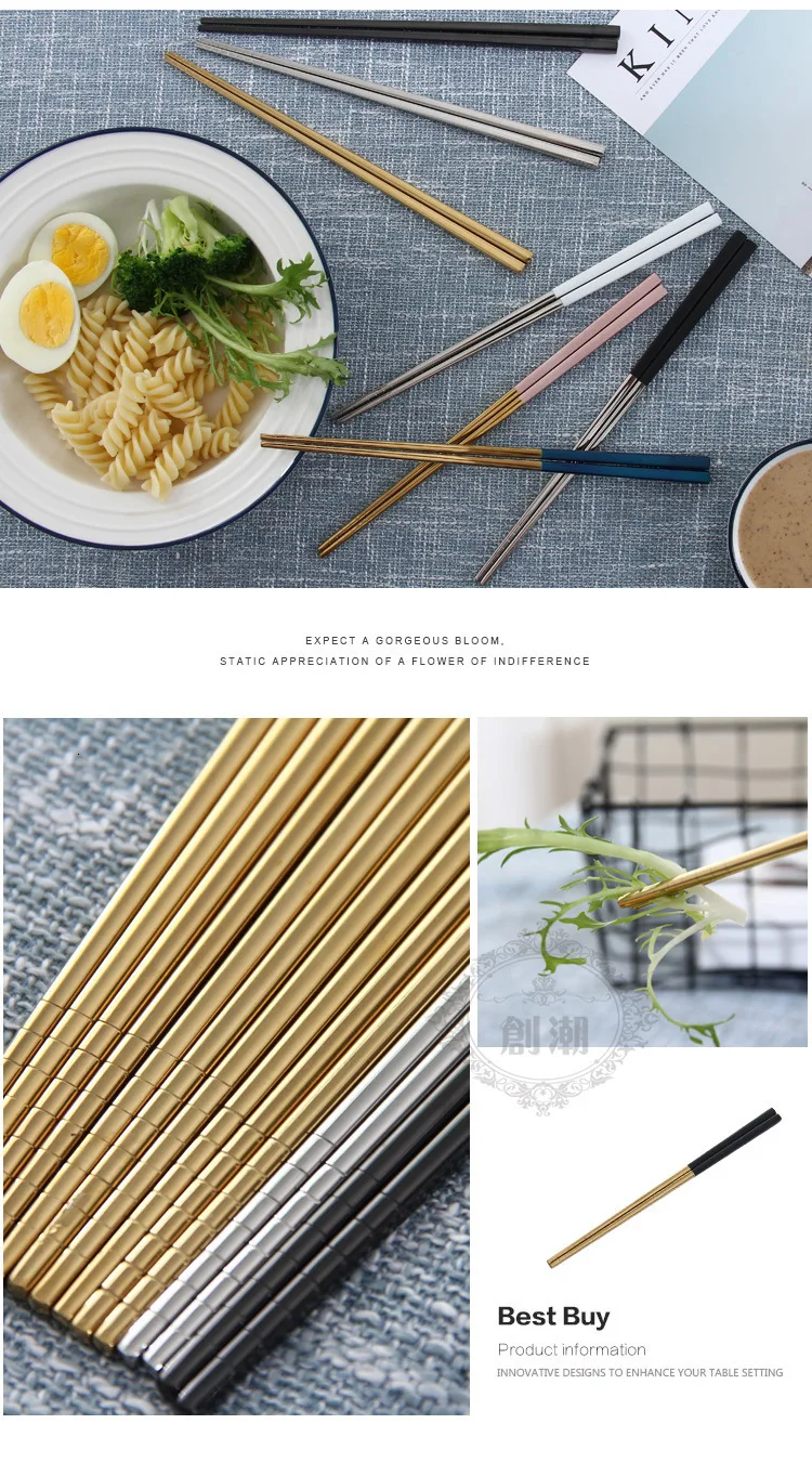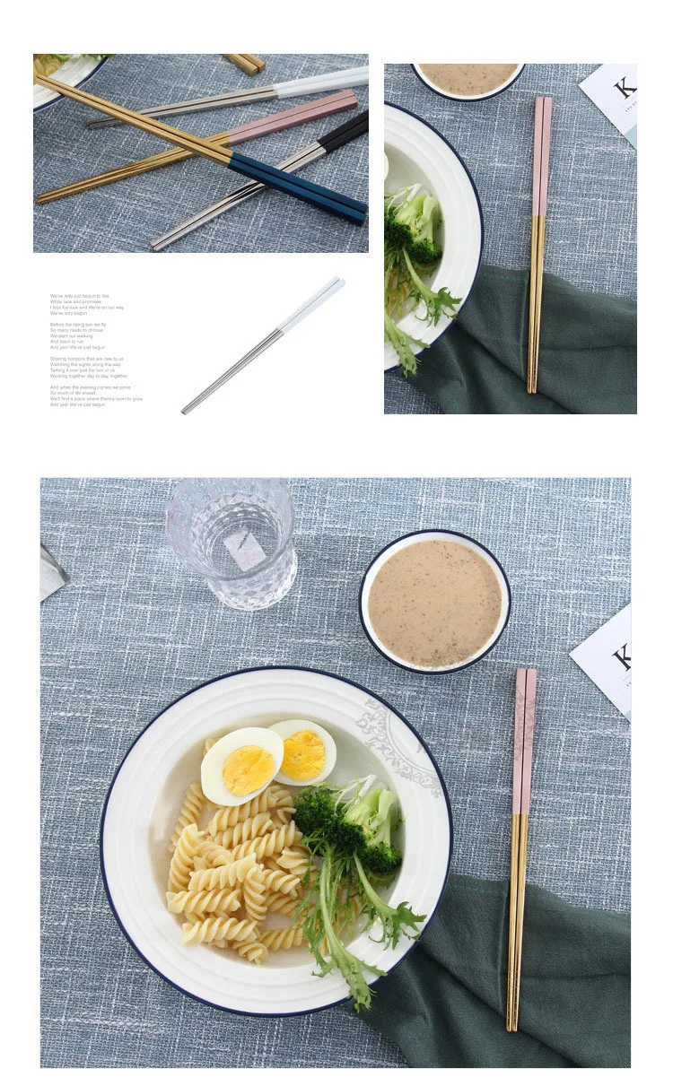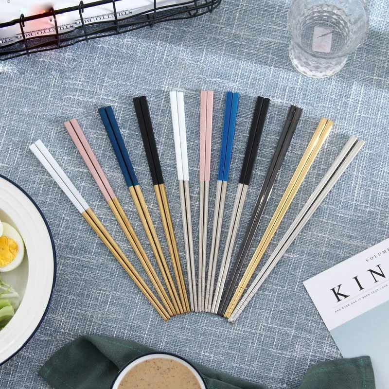 Китайские стильные Нескользящие палочки 5 пар, палочки для еды из нержавеющей стали, многоразовые палочки для еды, суши, багета