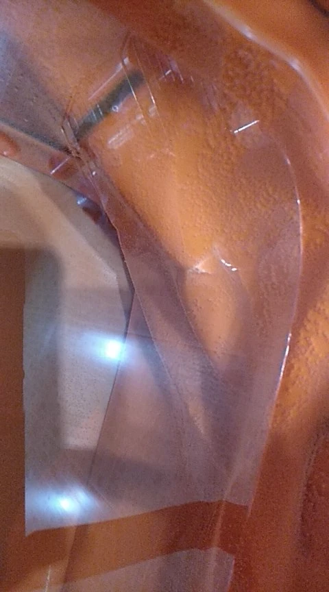 Ожидания не совсем оправдались. По нижней кромке заусенцы, материал жёстче, чем казалось по видео. В местах сгиба сильные заломы, надеюсь не будет протекать. Заполнил горячей водой, может расправится. И, хотелось бы, крышку на верхней горловине, иначе, при перевозке, может выплёскивается вода