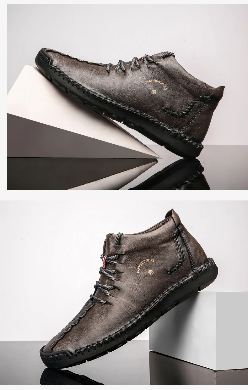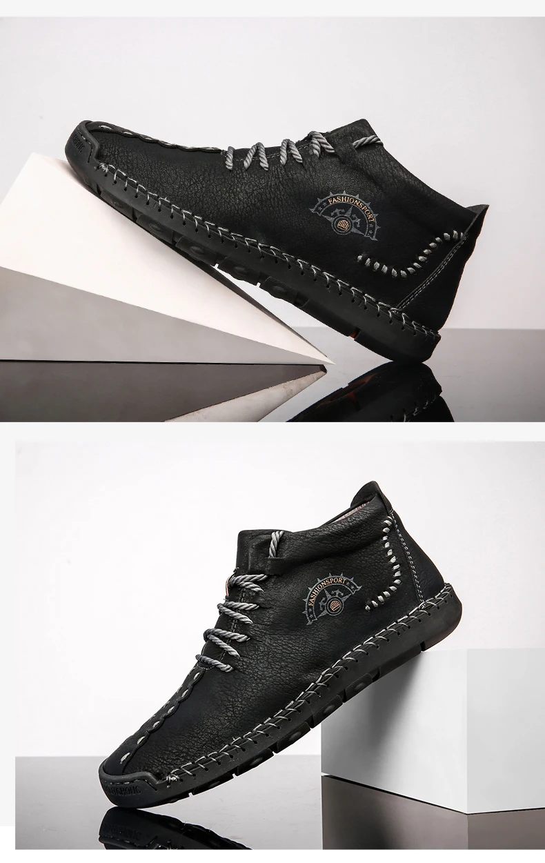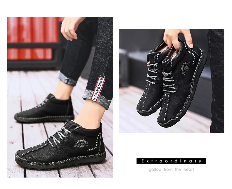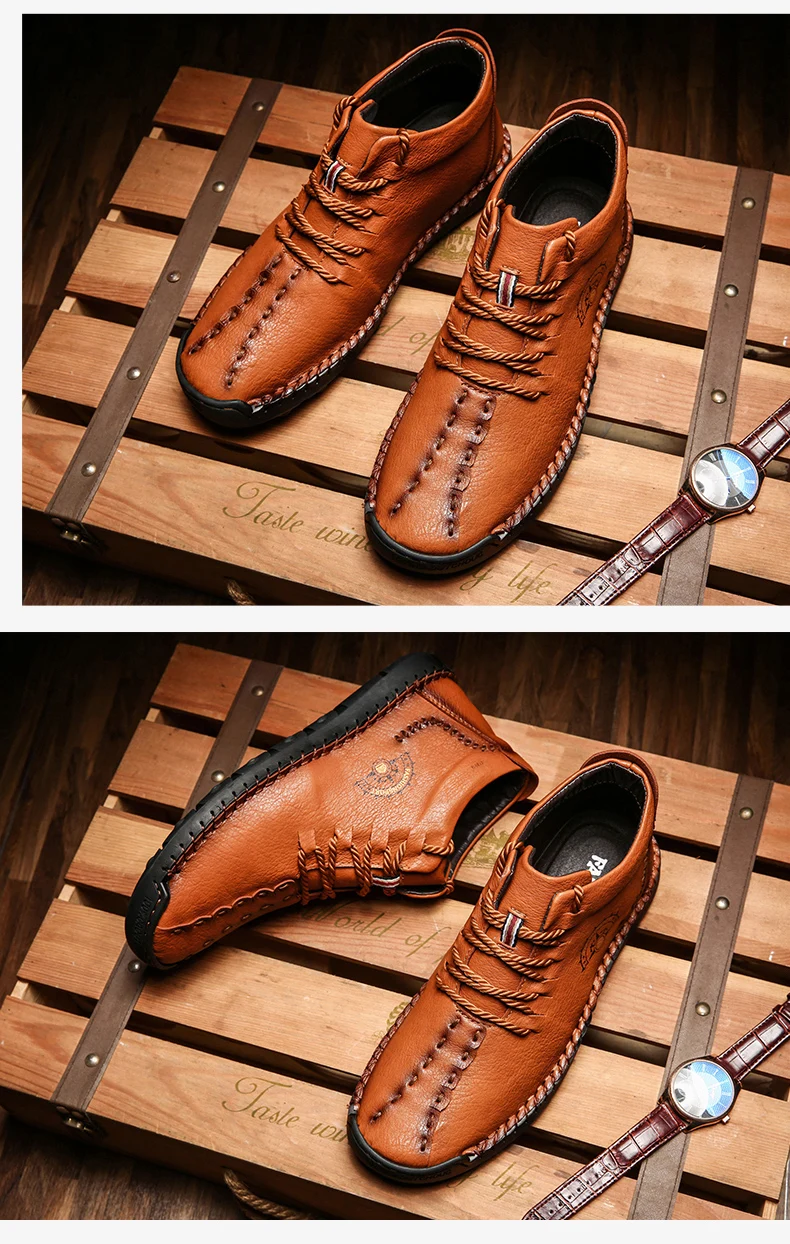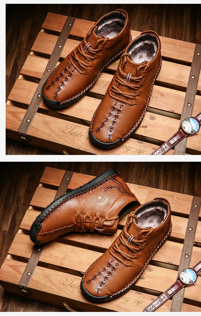 winter boots men leather waterproofboots men casual leather high top