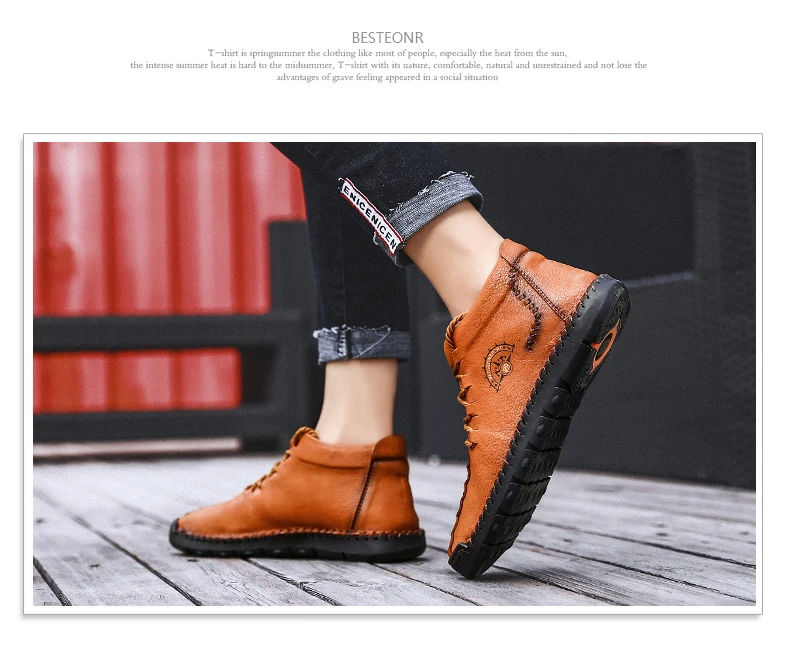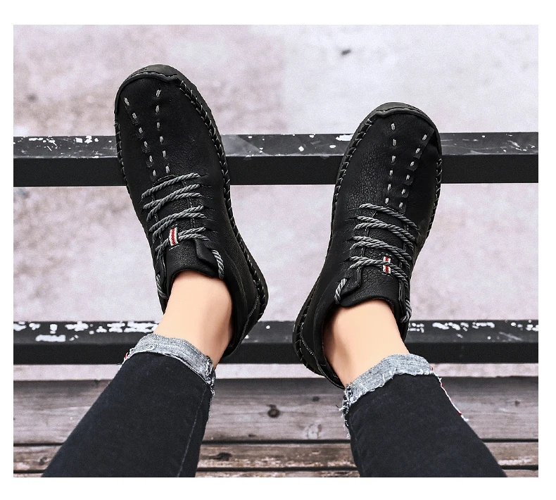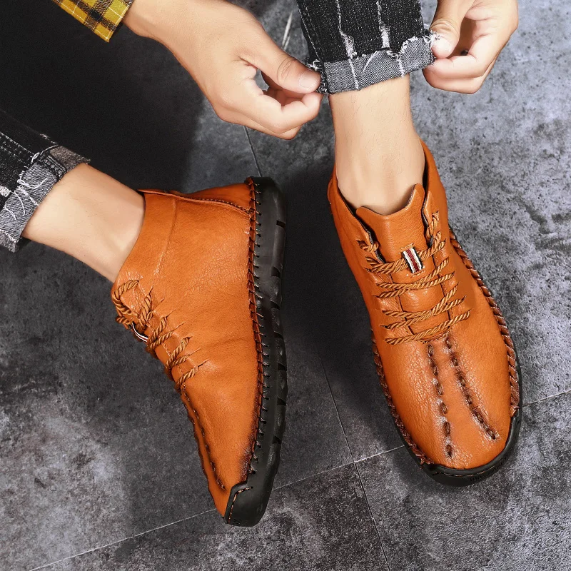 rubber sole bootsComfortable and Breathable Male leather moccasins