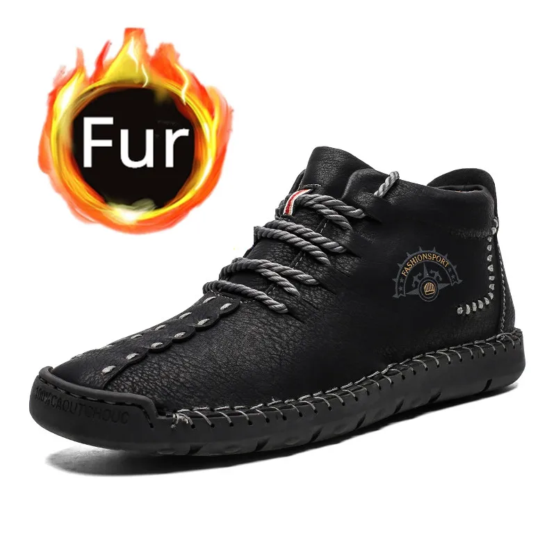2019 new boots menleather winter boots men fur sizes 48