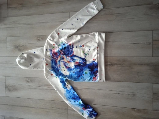 принт очень классный. сама кофта из синтетики. приятная телу. очень быстрая доставка- две недели. неожиданно. жаль, что нет взрослых моделей.
