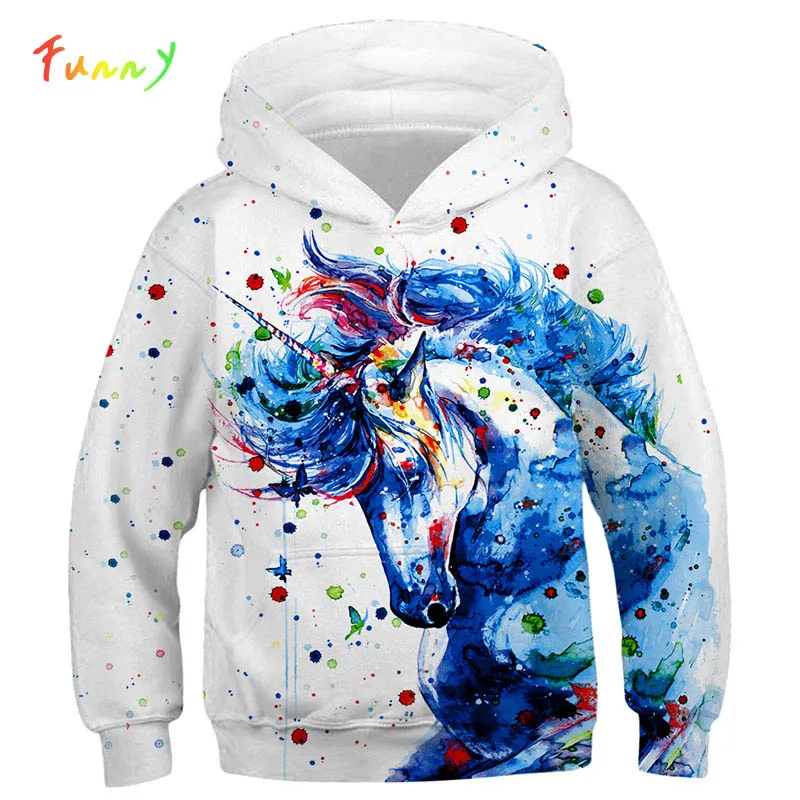 Модные толстовки с 3D единорогом, для девочек и мальчиков, Радуга с принтом животного, лошади, тонкие, с длинным рукавом, детские толстовки с капюшоном, пальто с капюшоном для малышей