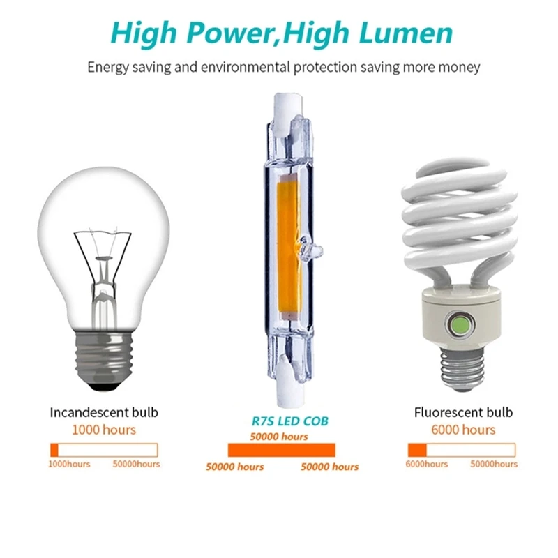 Название продукта: стеклянная трубка COB R7S светодиодный ная лампа Выходная мощность: 15 Вт/30 Вт/40 Вт/50 Вт Тип основания: R7S Длина лампы: 78 мм светодиодный 118 мм СВЕТОДИОДНЫЕ Чипы: количество светодиодов COB-чипов: 1 шт. входное напряжение COB: 220 В переменного тока, 230 В, 240 в угол луча: 360 градусов температура корпуса: <80 Рабочая светодиодный да: -40 C ~ + 55 C Срок службы: 50000 часов сертификация: CE & RoHS цвет излучения: теплый белый/холодный белый/натуральный белый Цветовая температура: 2500-3200K (теплый белый) / 6000-6500K (холодный белый) / 3500-5000K (натуральный белый)