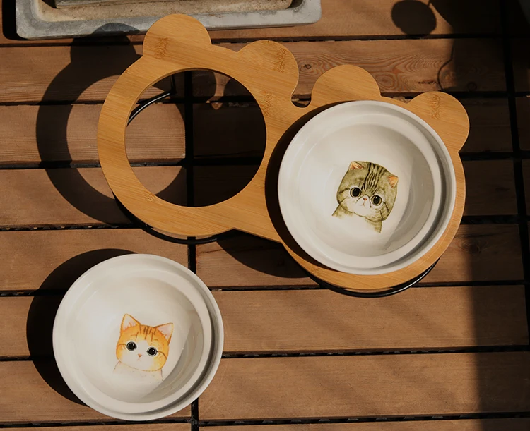 Горячая Распродажа Высококачественная миска для домашних животных, Бамбуковая полка, керамические миски для кормления и поилки для кошек и собак, миски, аксессуары для кормления домашних животных