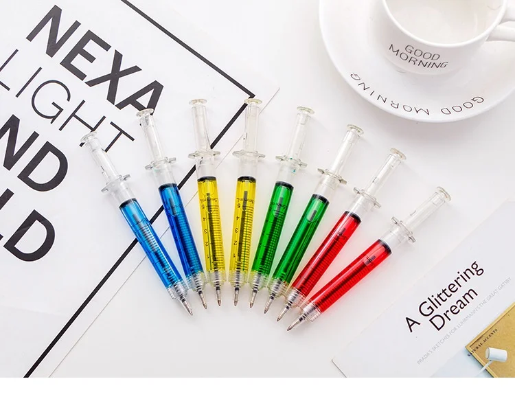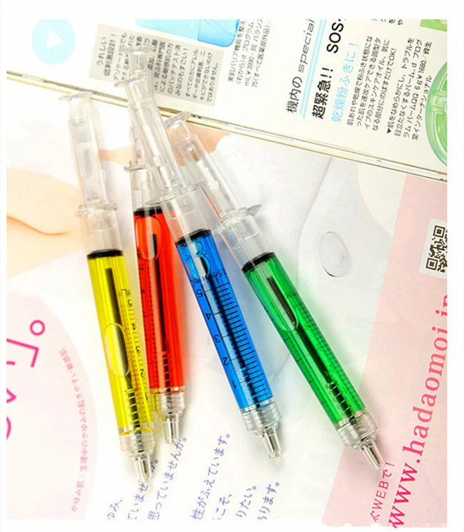 4 шт цветные ручки в форме шприца Новинка жидкостной шприц шарикова...