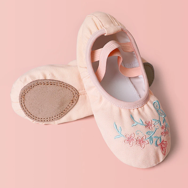 Балетная обувь для девочек, детские танцевальные Тапочки с вышивкой, с раздельной подошвой, обувь для гимнастики и танцев
