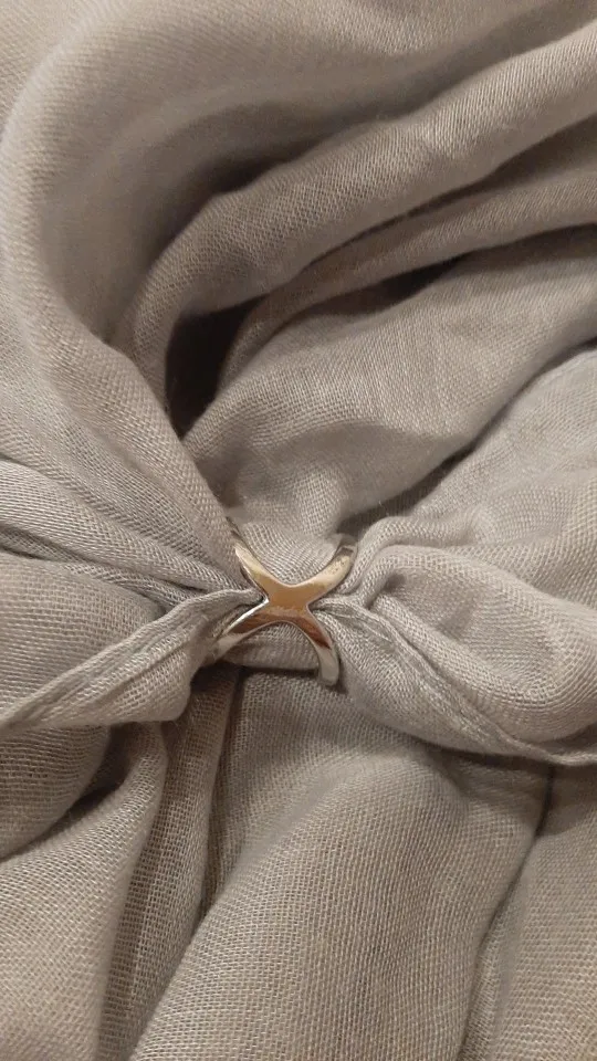 Металлическая брошь в форме Х, зажим для шарфа соответствует описанию. Пришла очень быстро. Надеюсь хорошо послужит по своему назначению