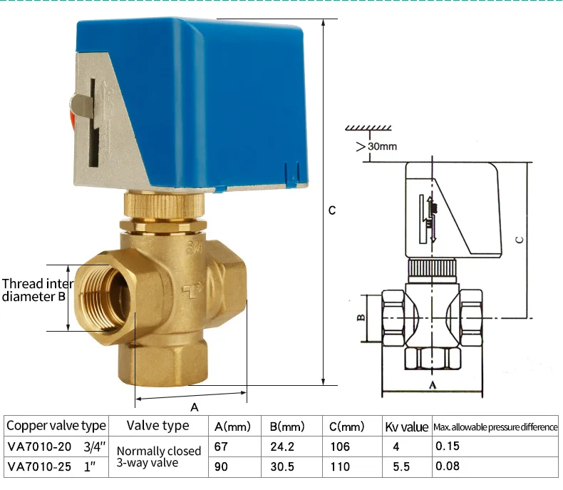 G12 "34" 1 "латунный 2-ходовой 3-ходовой нейтральный провод вентиляторной катушки VA7010 электрический клапан для инструментов управления потоком высокого качества 220 В переменного тока