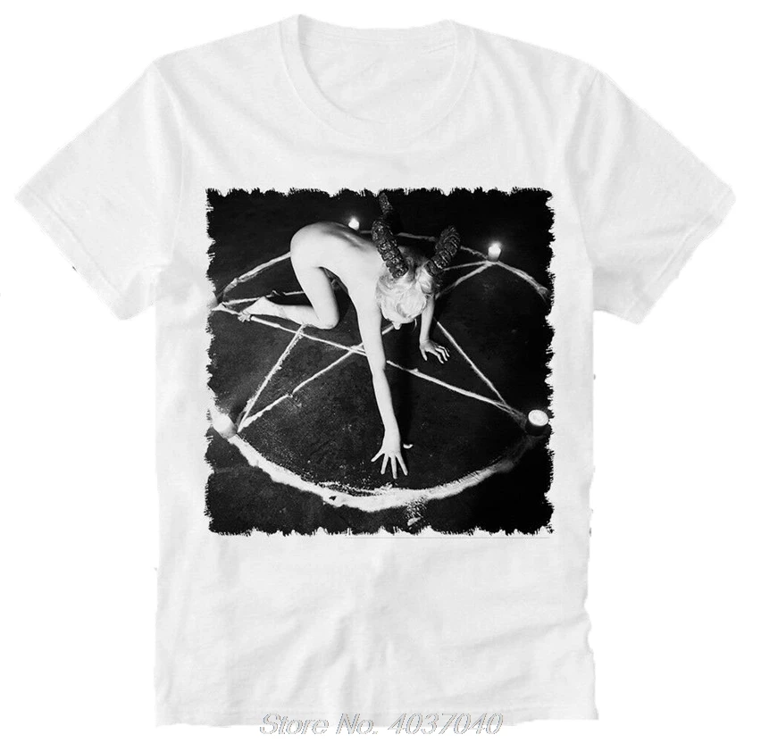 Летняя футболка с надписью церковь сатаника, багомет, пентаграмма, сексуальная девушка, порно, гот, Харадзюку, футболка в стиле хип-хоп