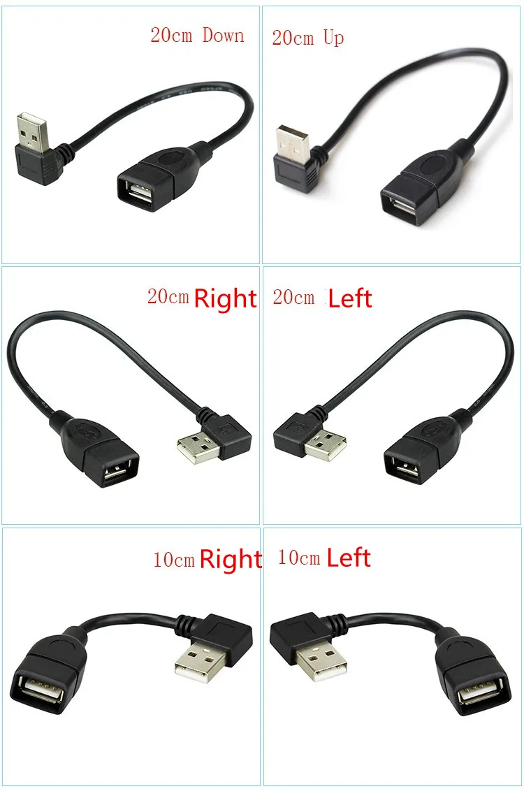 Кабель-Удлинитель USB 2,0 A (штекер)USB (гнездо), 10 см, 20 см, 40 см, 90 градусов, вверх, вниз, влево и вправо, черный