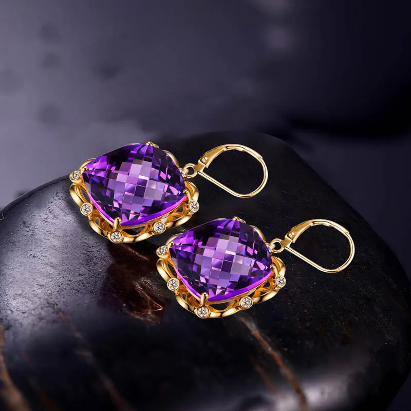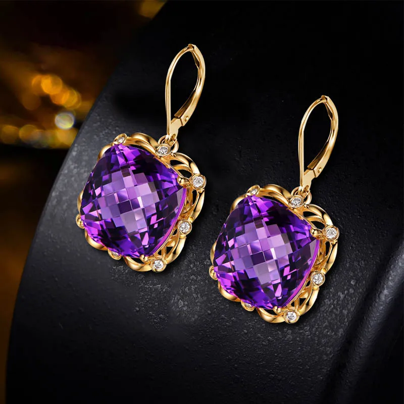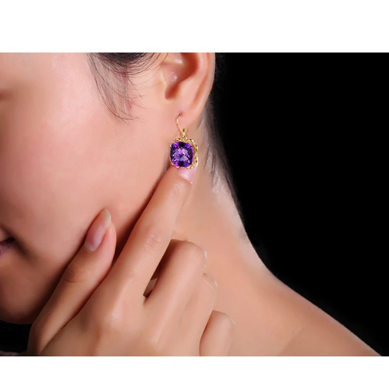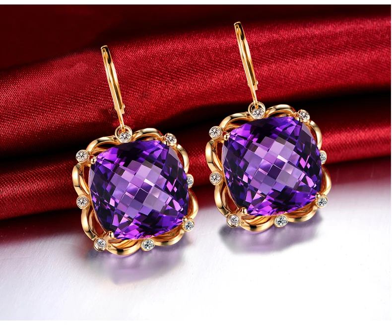Серьги SLFD из чистого золота 18 карат с аметистом, серьги из твердого золота 750 пробы с бриллиантами, модные ювелирные украшения, лидер продаж, новинка 2020