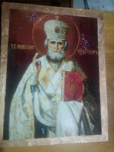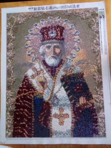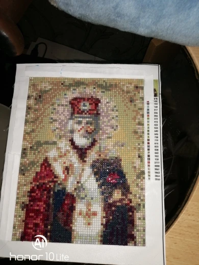 заказывала для бабушки, ей не понравилось (она уже много икон выложила, есть с чем сравнить). сказала, что очень темная икона, стразы мелкие, как крупа, выкладка полная (то есть лицо и руки тоже). доставка быстрая. с продавцом не общалась