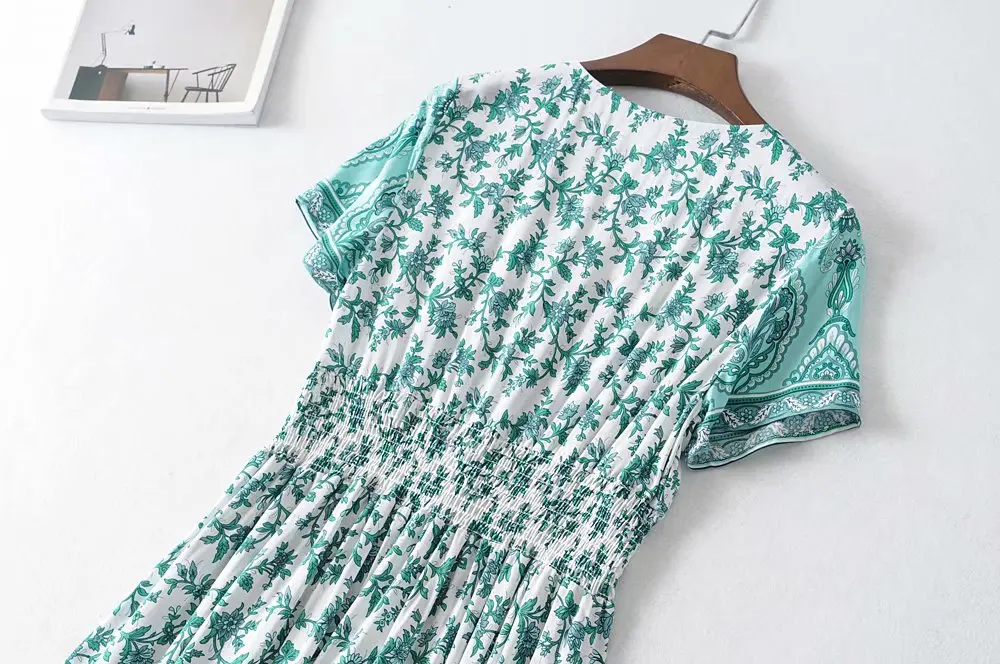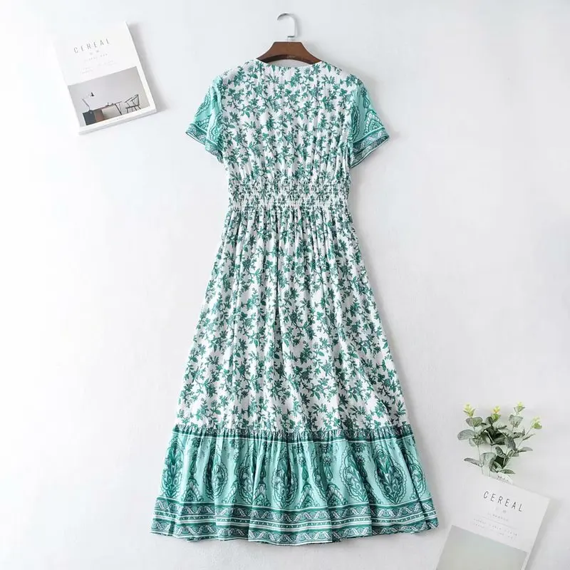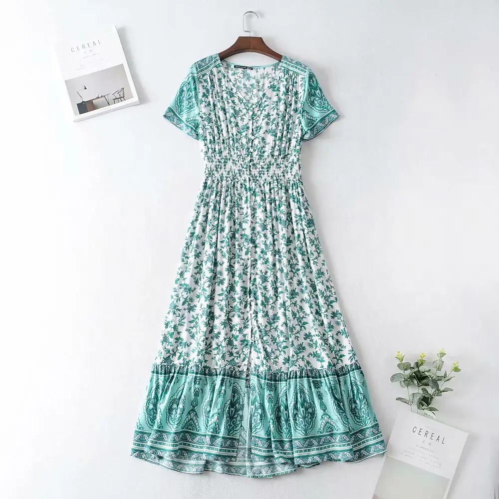 Женское богемное Платье макси с коротким рукавом и V-образным вырезом