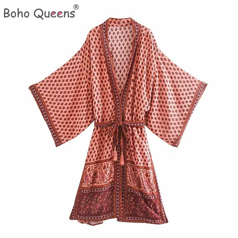 Женское богемное кимоно Happie Queens, винтажное кимоно в стиле бох...