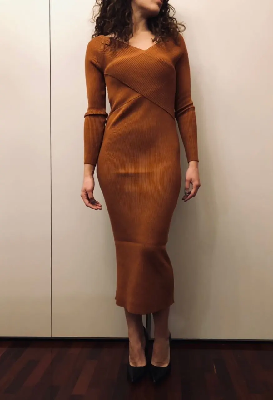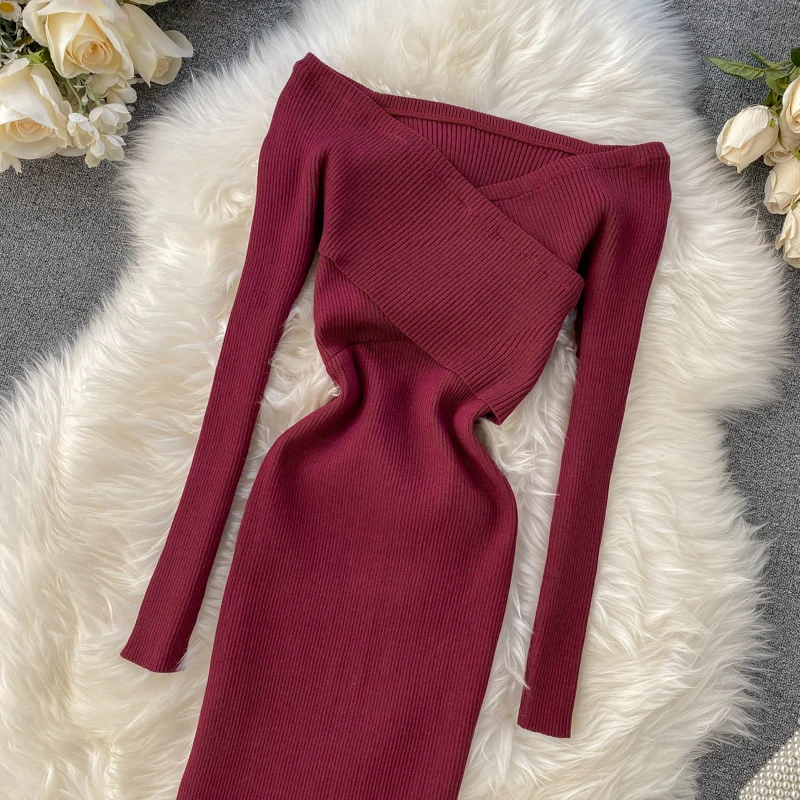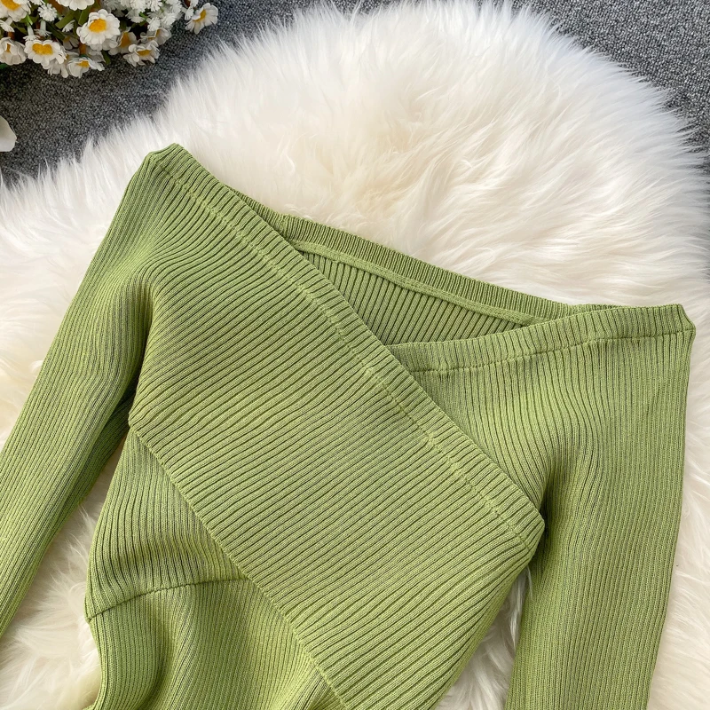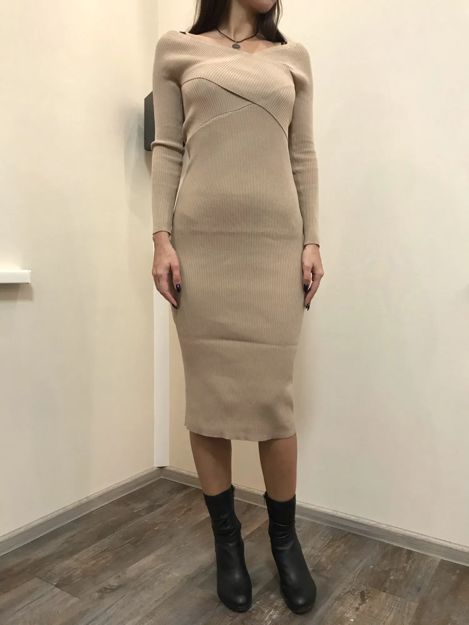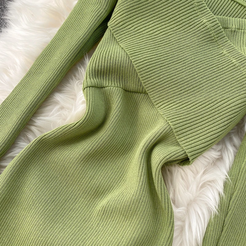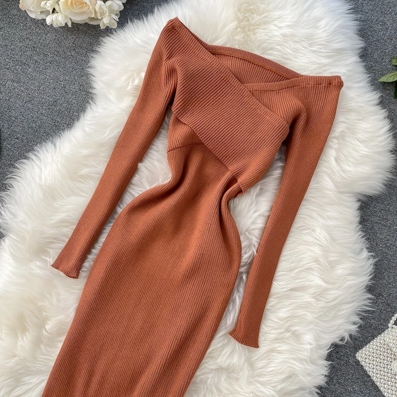 Женский трикотажный свитер средней длины, облегающее повседневное элегантное платье с открытыми плечами и перекрестными лямками, Осень-зима 2022