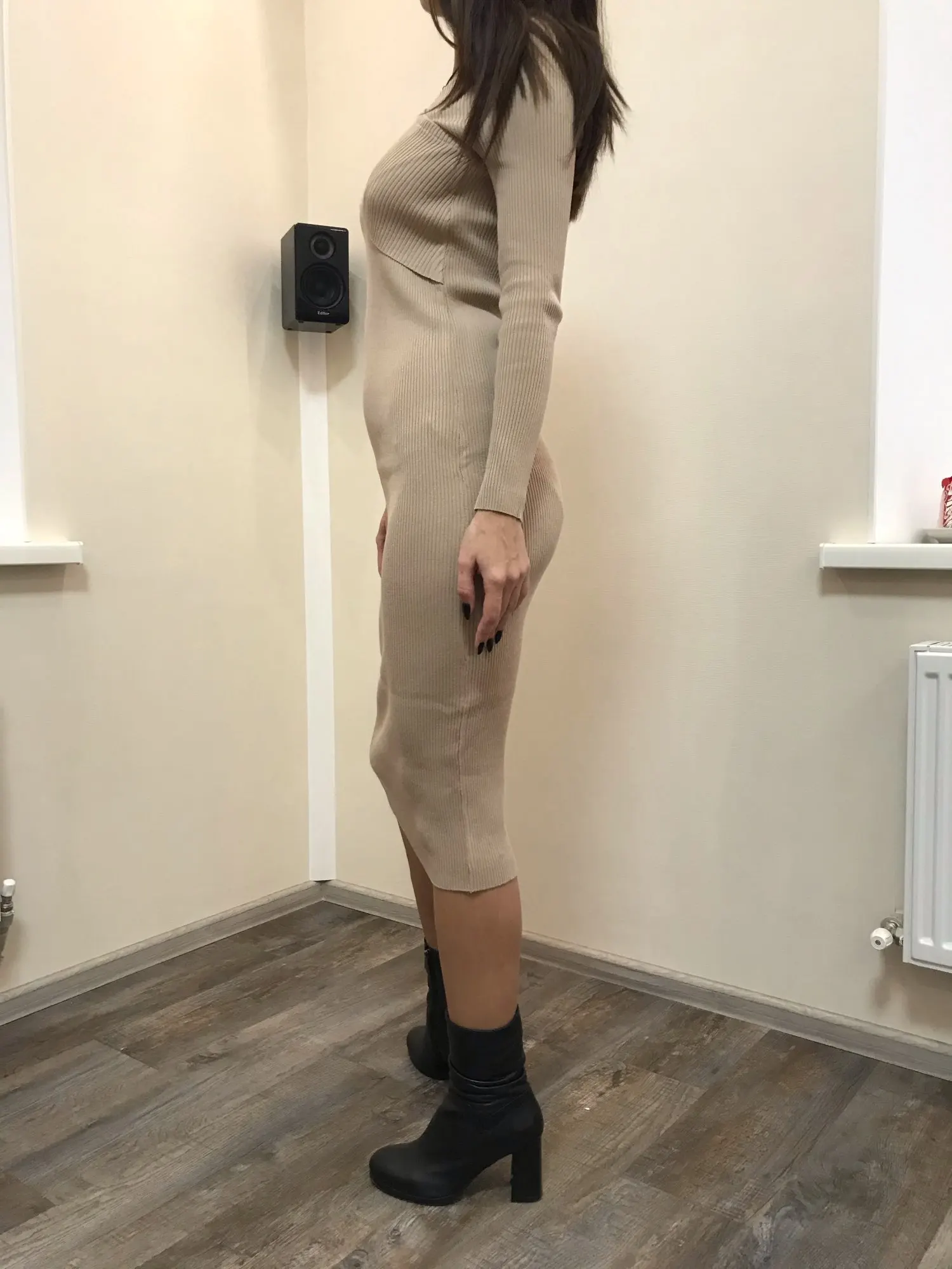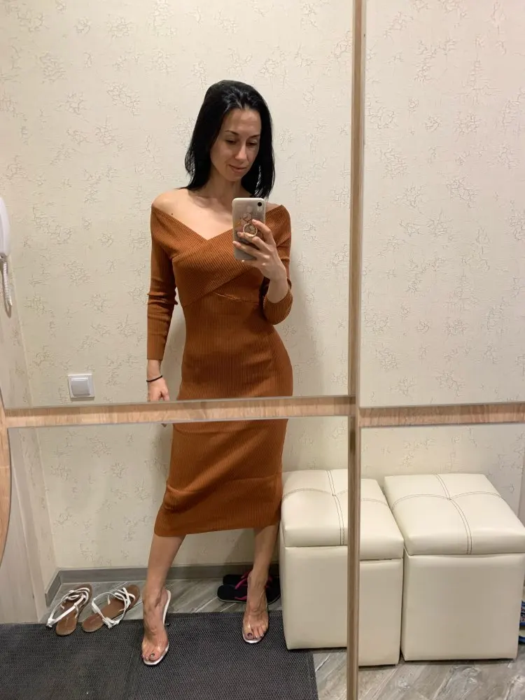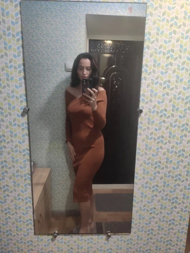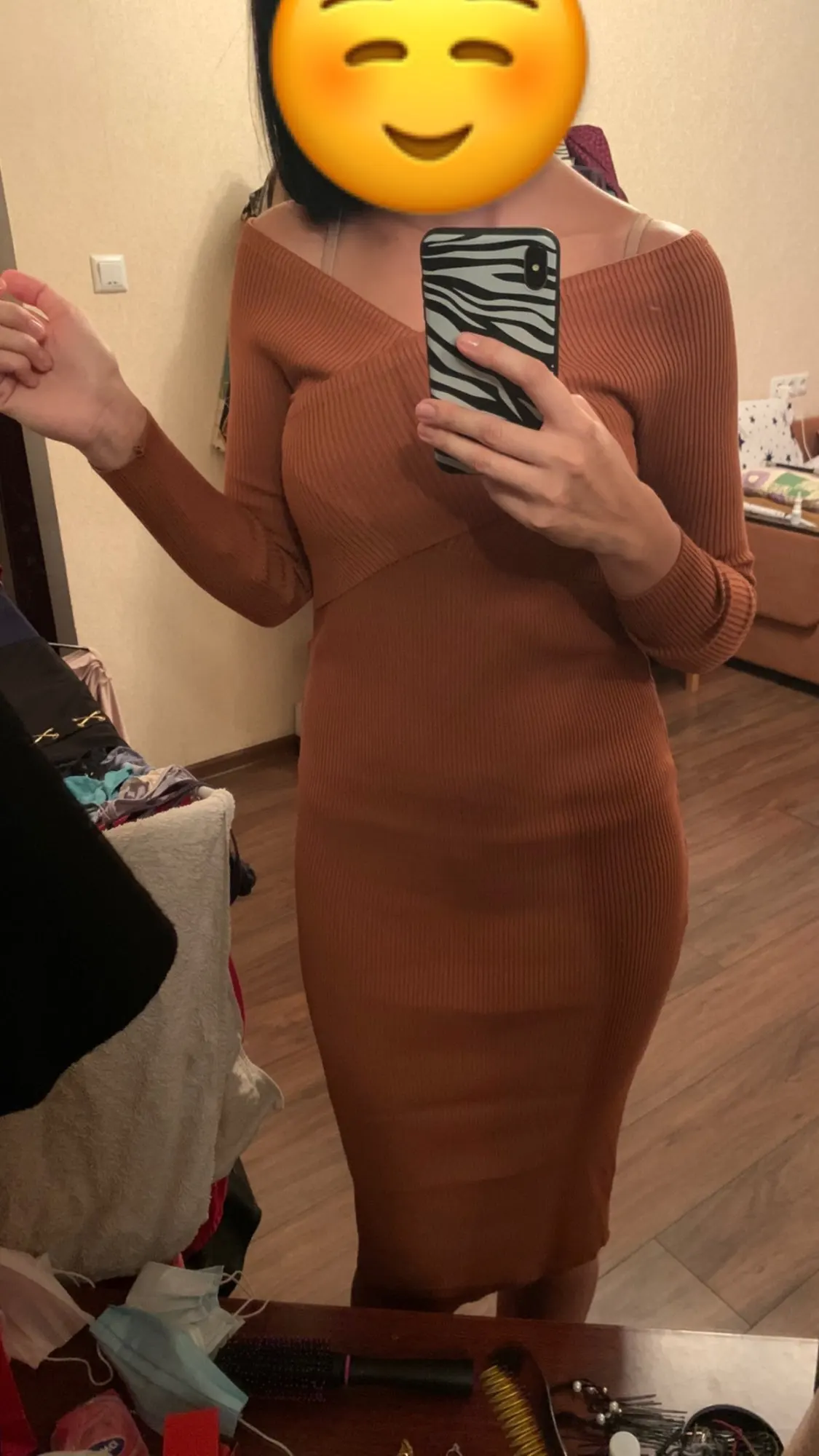 Платье пришло за 5 недель до Харькова. Размер отличный, на параметры 164 см/60 кг село очень хорошо, еще и запас есть. Длина до середины икры, как я и хотела. Ткань не толстая, рубчик, к телу приятная. На небольшую грудь тоже смотрится красиво, плечи можно слегка приоткрыть, а можно сделать более глубокое декольте. Платье и продавца рекомендую.