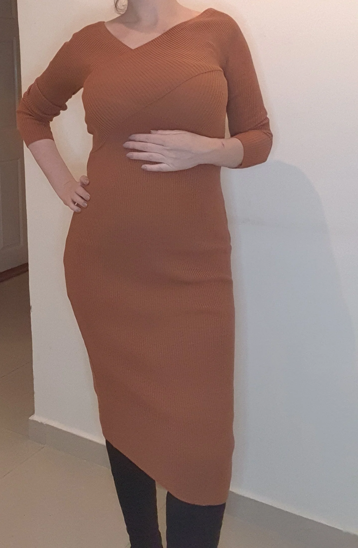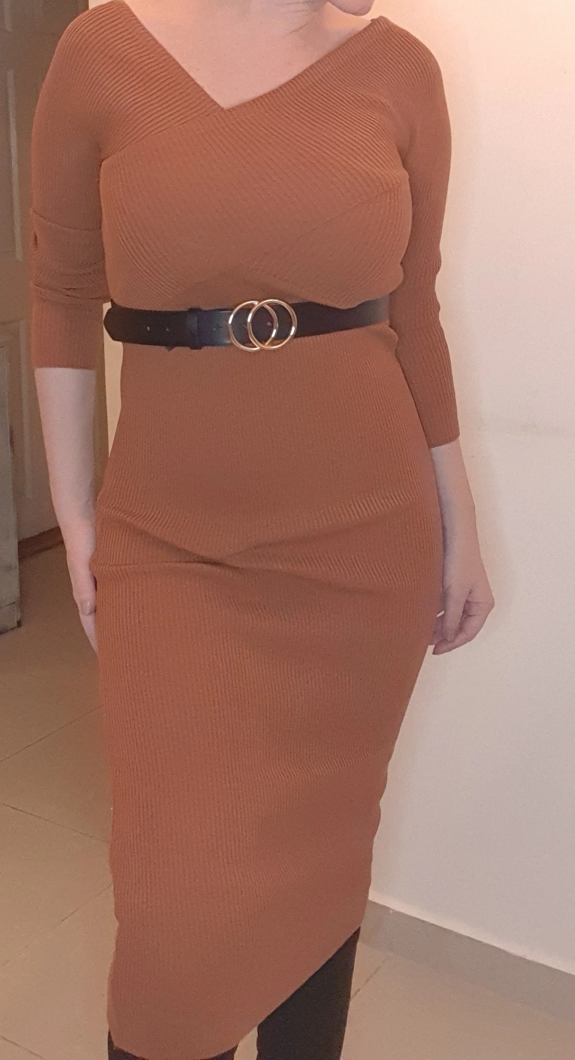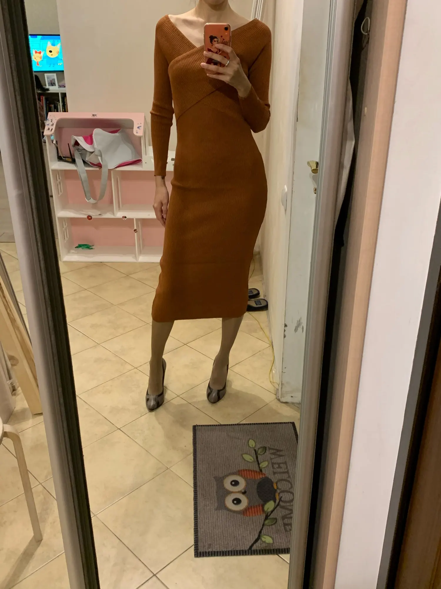 Платье пришло за 5 недель до Харькова. Размер отличный, на параметры 164 см/60 кг село очень хорошо, еще и запас есть. Длина до середины икры, как я и хотела. Ткань не толстая, рубчик, к телу приятная. На небольшую грудь тоже смотрится красиво, плечи можно слегка приоткрыть, а можно сделать более глубокое декольте. Платье и продавца рекомендую.