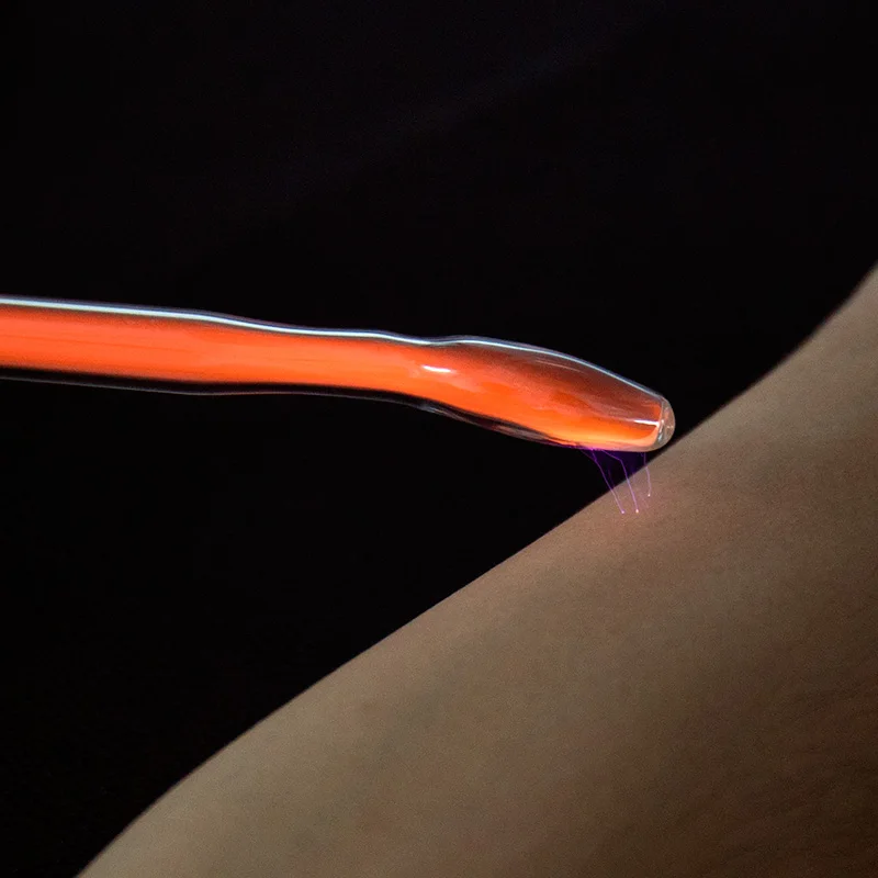 Стеклянная палочка вставляется в белый хост, подключается к источнику питания, поворачивает белый хост снизу, чтобы включить. Затем вы можете наслаждаться электростимуляцией.