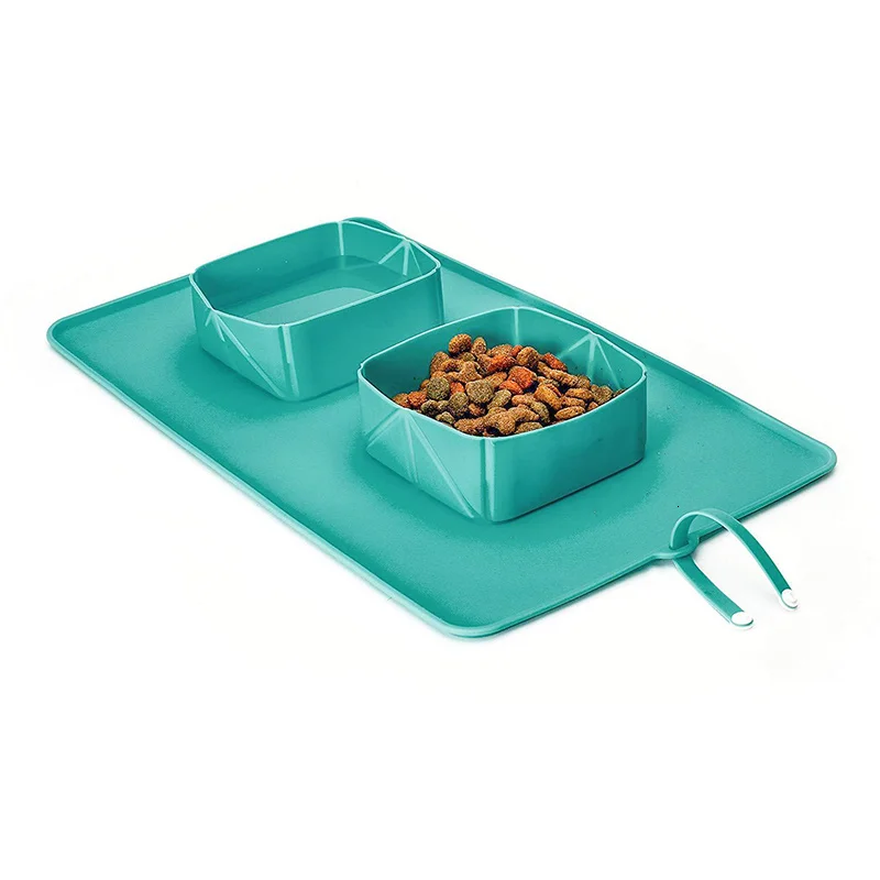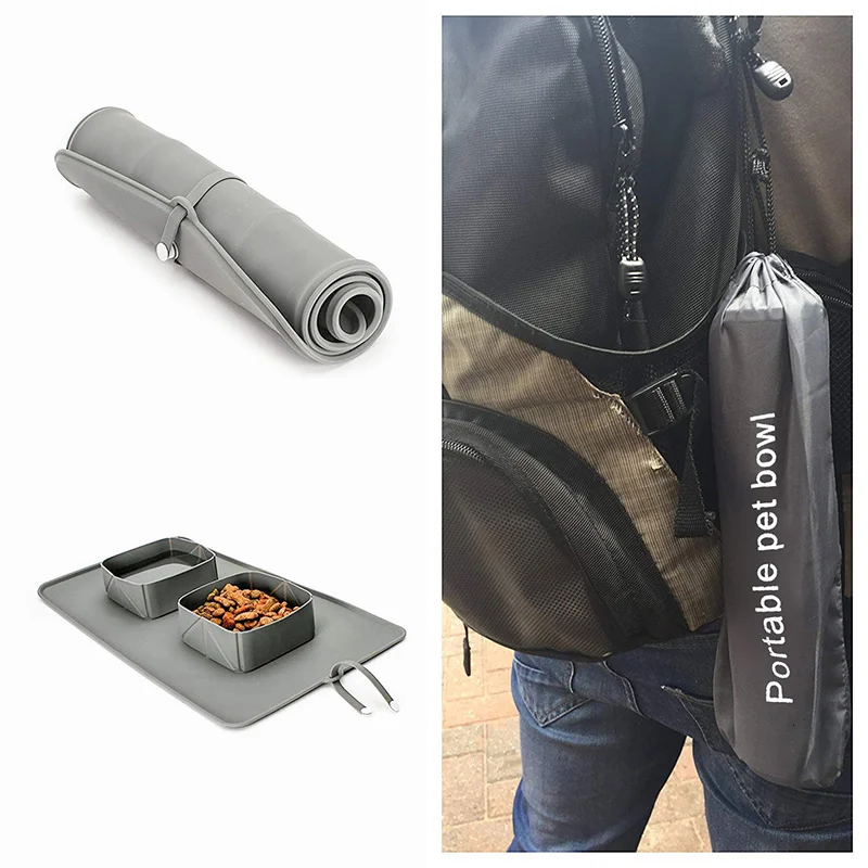 Складная миска для собак Benepaw, двойные миски, нескользящий коврик, переносная Нетоксичная силиконовая миска для щенков, дорожная миска для маленьких, средних и больших собак