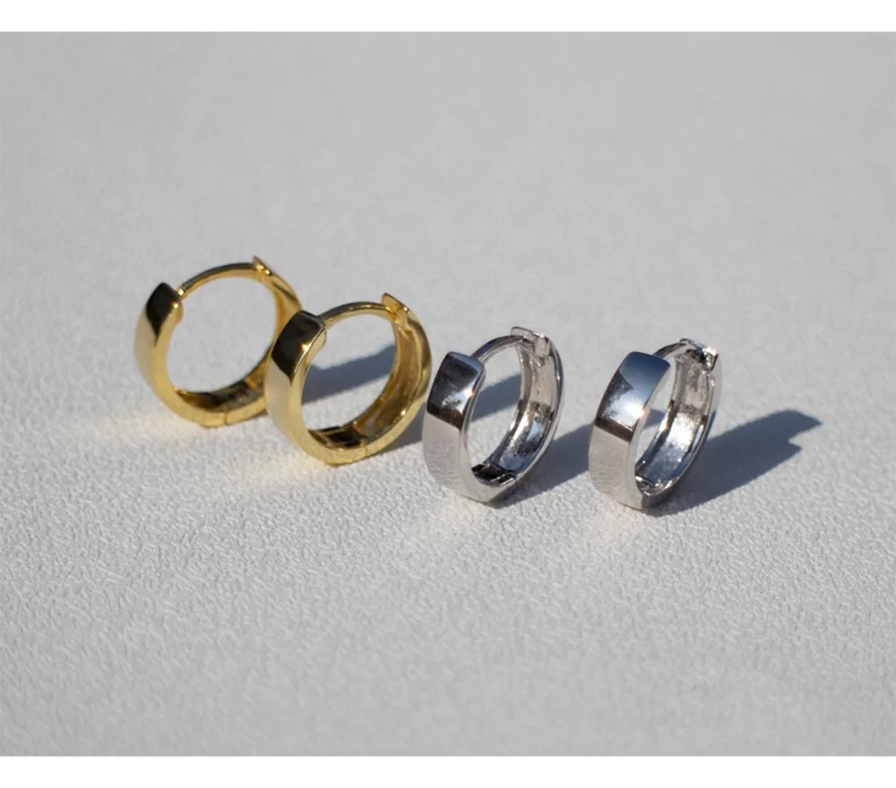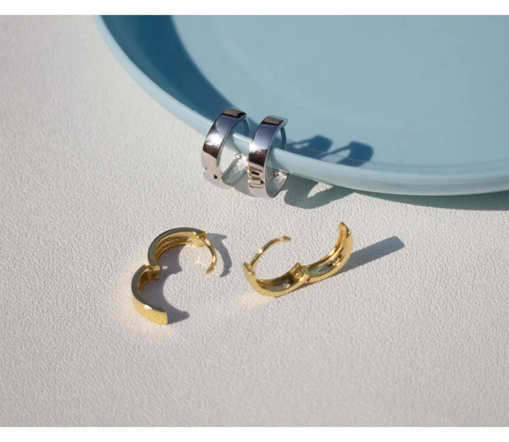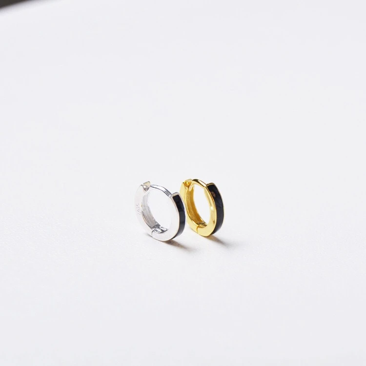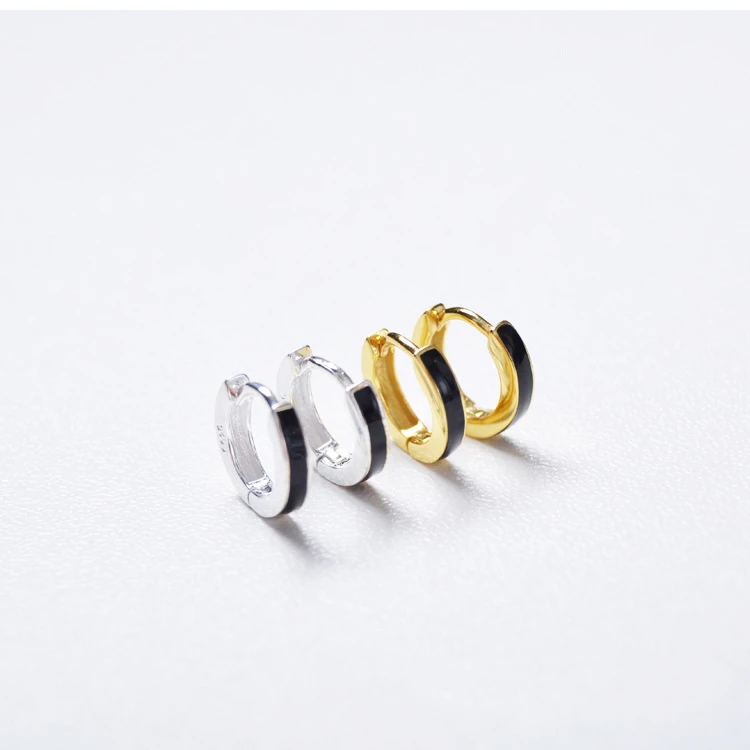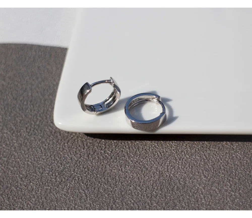 925 пробы серебряные серьги Стильные Простые широкие-практически завершен Сережка черный слуховая косточка с ушками, с пряжкой, Для женщин Мальчик девушка серебряные серьги Jewelr
