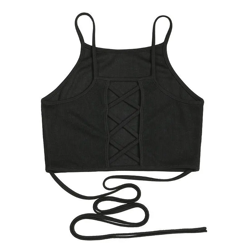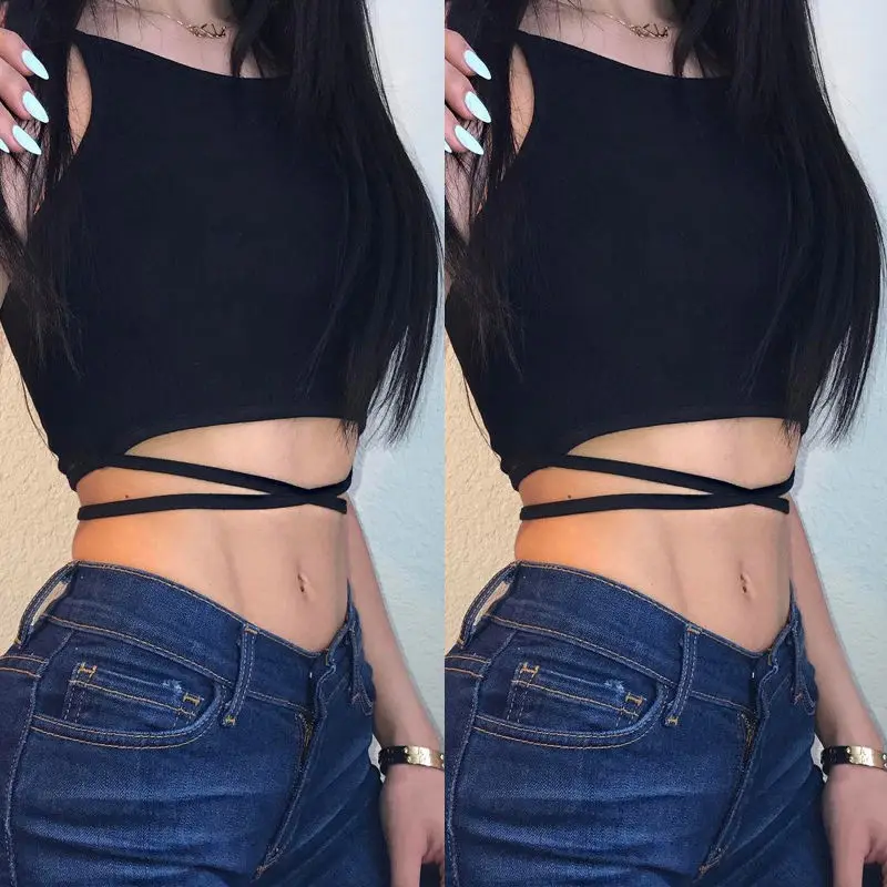 Прямая сделка со склада в США, женский сексуальный однотонный бандажный Топ, рубашки, женские готические укороченные топы, Жилет SML