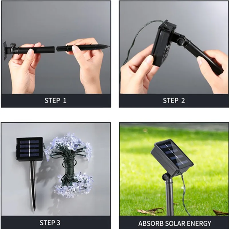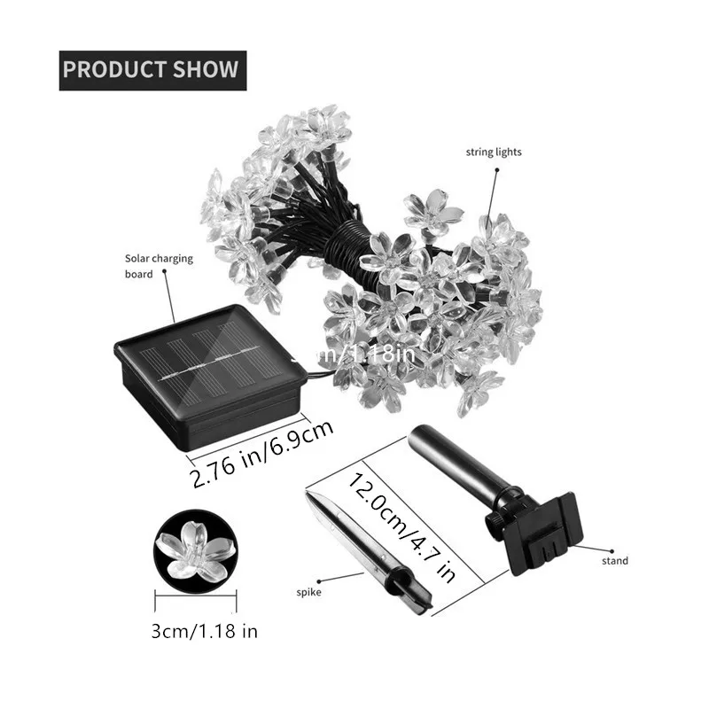 Уличная светодиодная гирлянда на солнечной батарее, уличный шнурок с цветами вишни для сада, патио, рождественское и свадебное украшение, водонепроницаемая, IP44