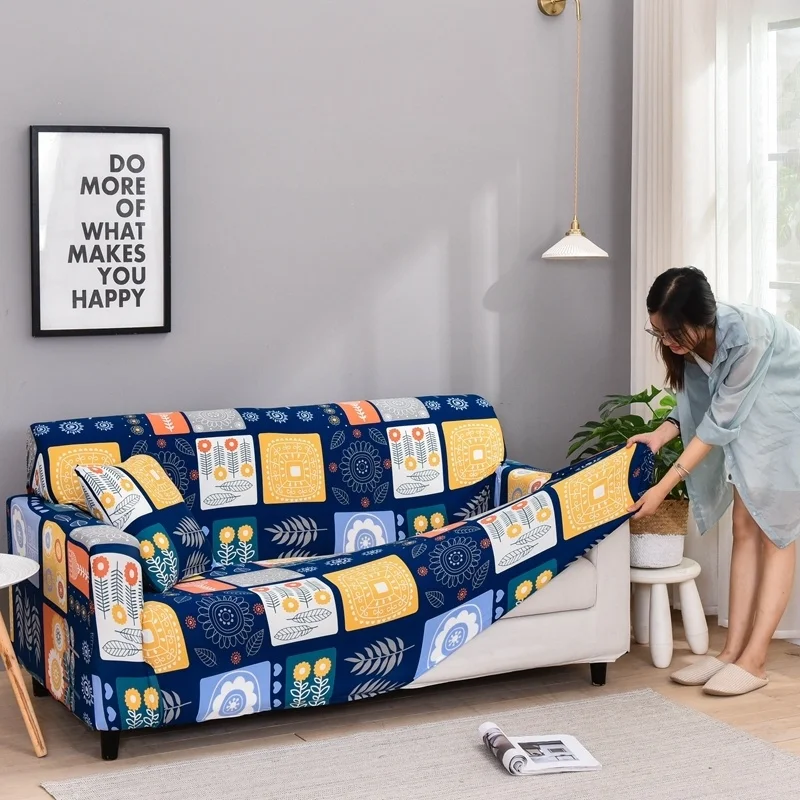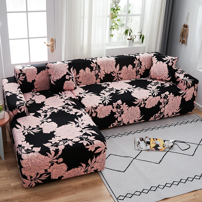 Эластичный чехол для дивана, эластичное L-образное покрытие из спандекса, с цветочным дизайном, для гостиниц и гостиной