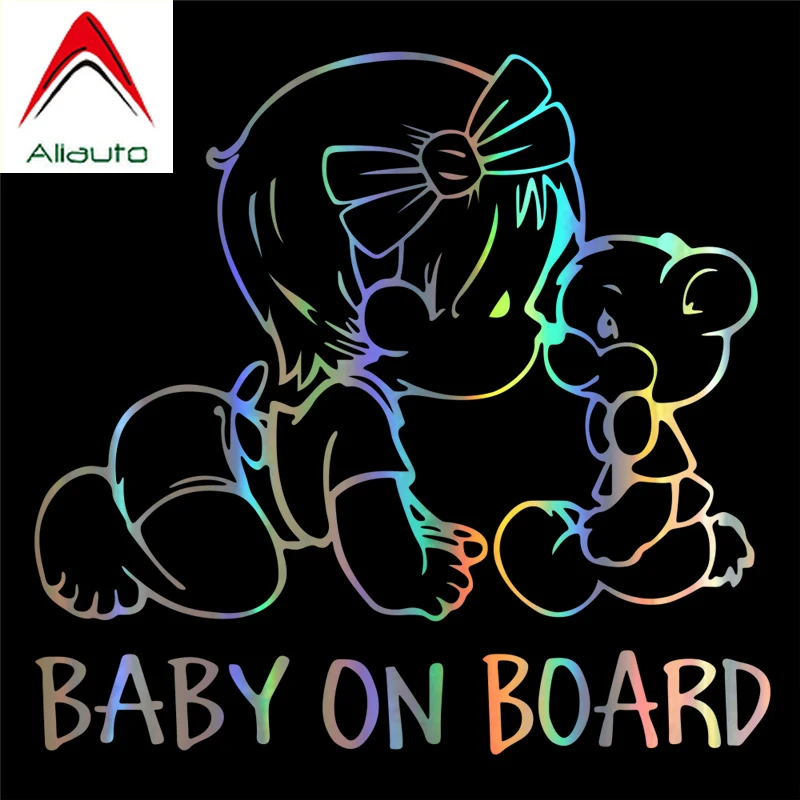 Милый автомобильный стикер Aliauto для девочек на борту, Предупреждение ющий знак, Виниловая наклейка для Octavia Gti, Skoda Renault Lada,15 см * 14 см