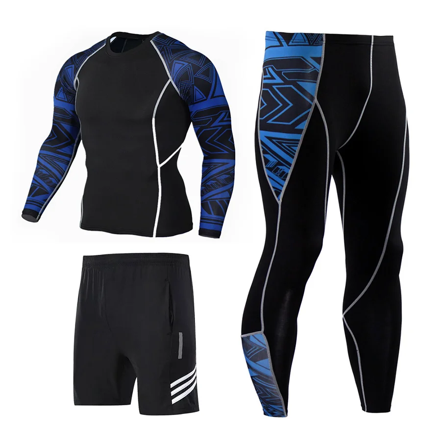 Мужской спортивный костюм компрессионная тренировочная одежда комплект термобелья для фитнеса Рашгард для MMA мужская быстросохнущая рубашка